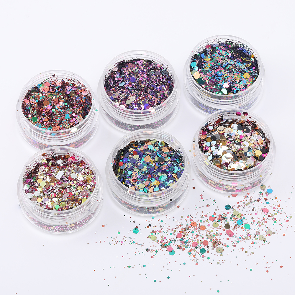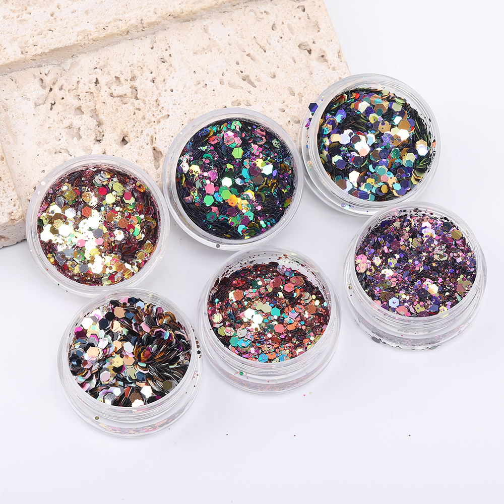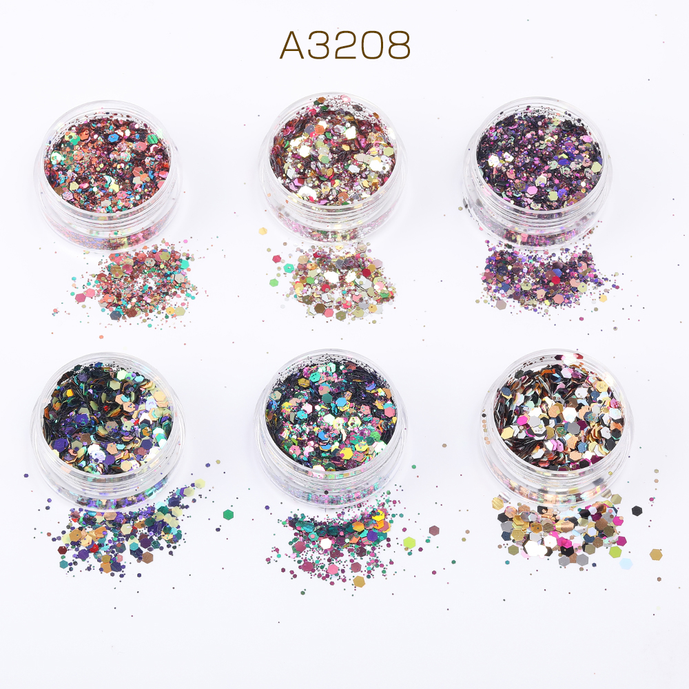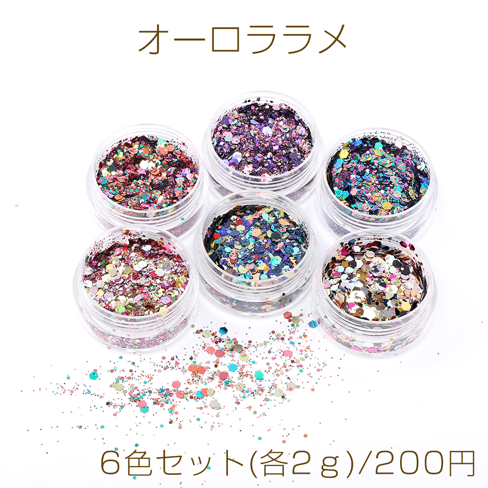 オーロララメ ケース付き ネイルパーツ レジン封入パーツ 六角形A 6色セット(各2g)