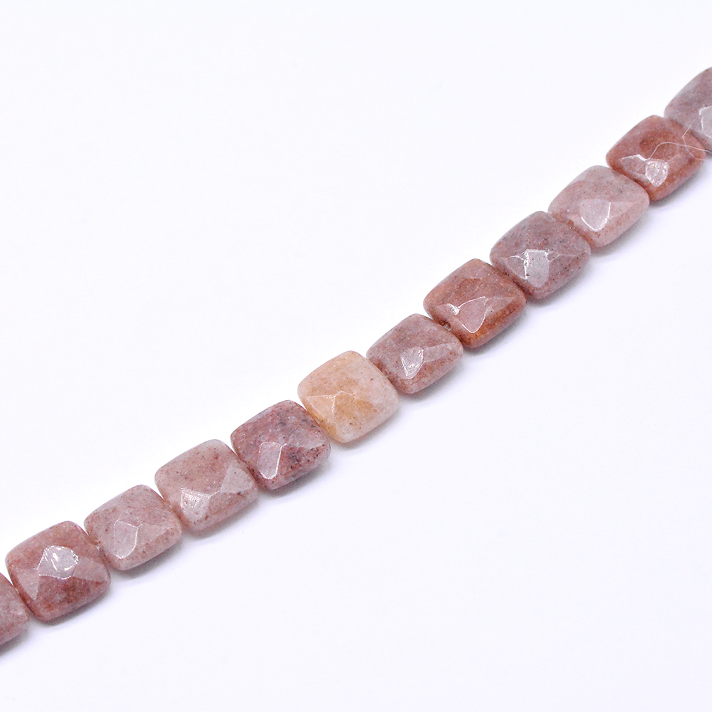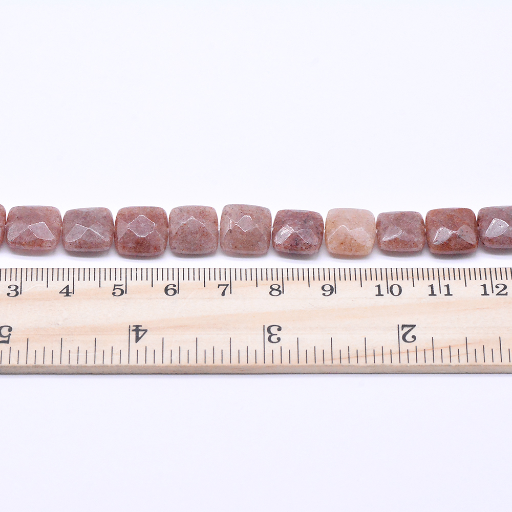 天然石ビーズ 正方形カット ワインレッド 【1連(約39ヶ)】