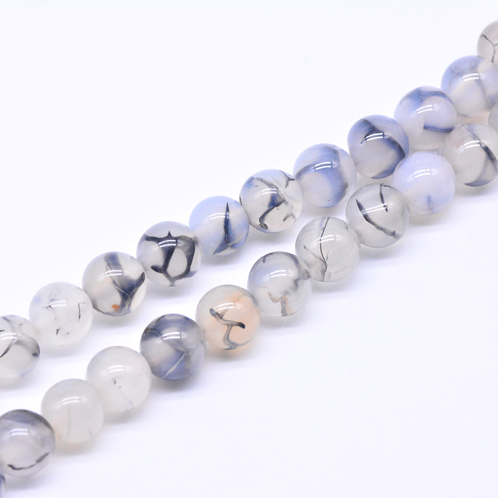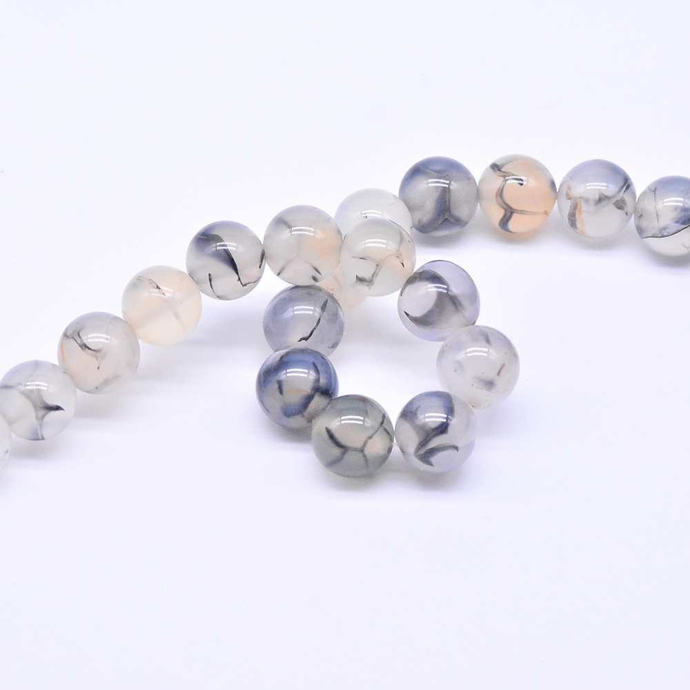 天然石ビーズ アゲート 丸型 グレー 10×11mm 【1連(約38ヶ)】