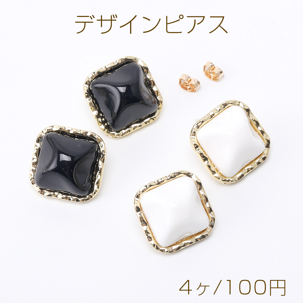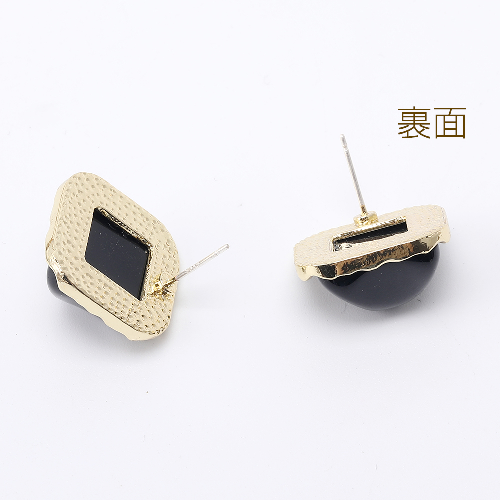 デザインピアス 水面カボションピアス スクエア型 樹脂貼り 20×20mm ゴールド(4ヶ)