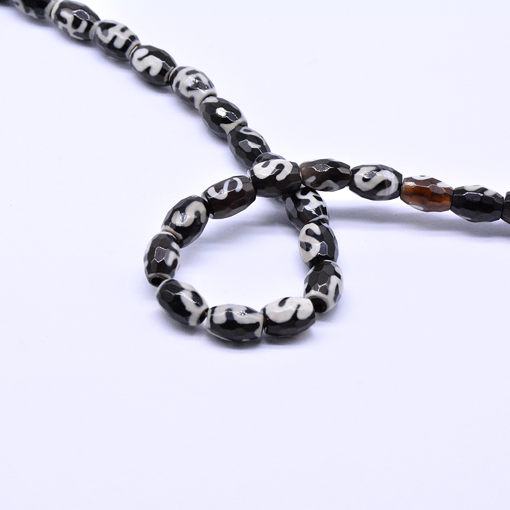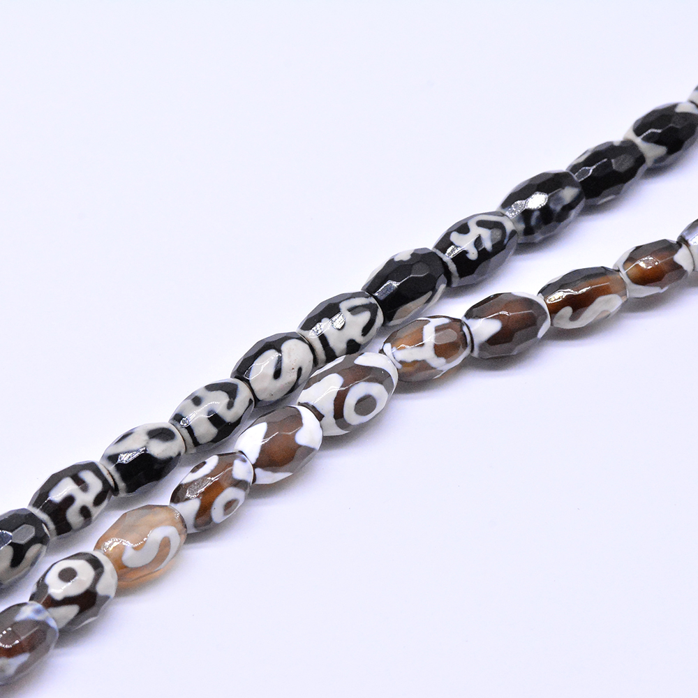 天然石ビーズ 瑪瑙 オーバルカット 模様入り 8×11mm【1連(約30ヶ)】