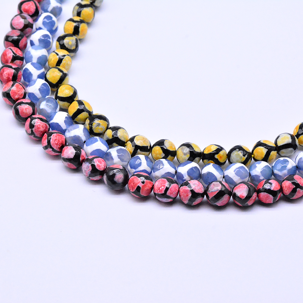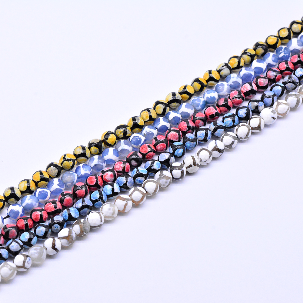 天然石ビーズ 瑪瑙 丸型カット 模様入り 8mm【1連(約48ヶ)】
