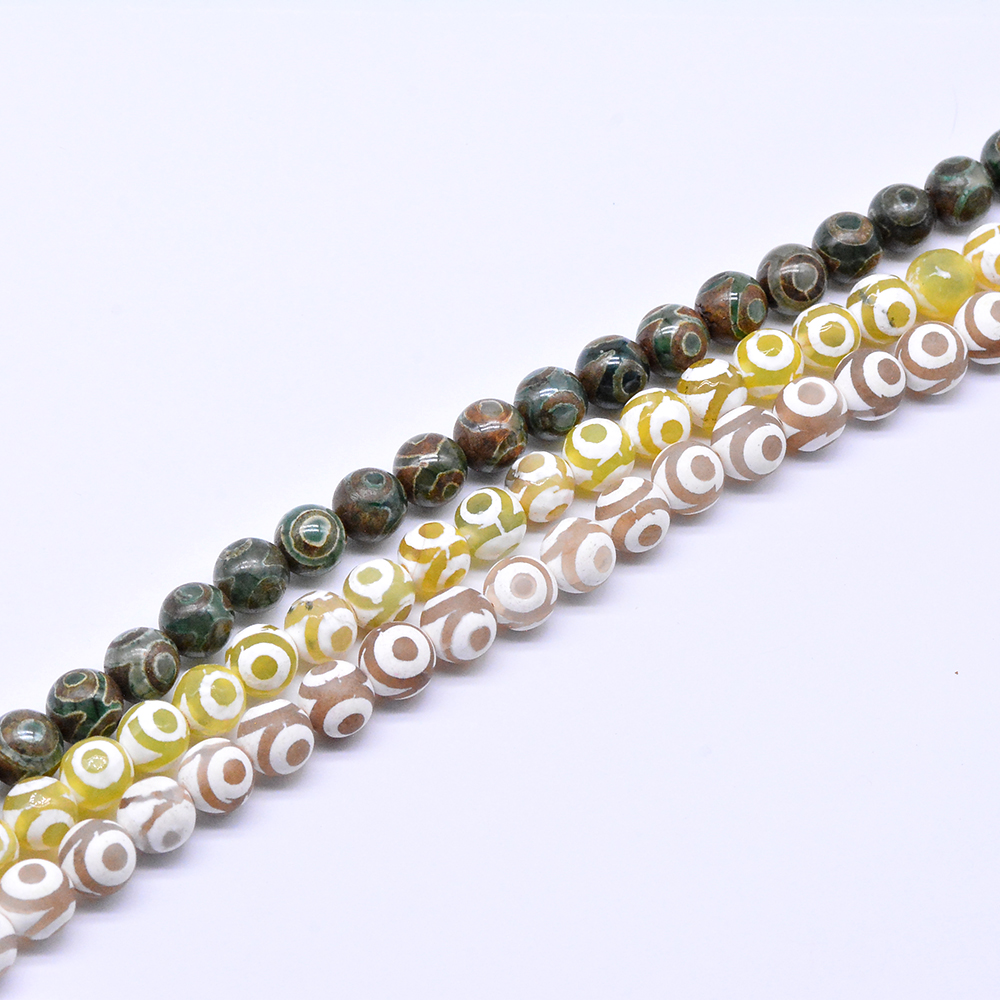 天然石ビーズ 瑪瑙 丸型 模様入り 10mm【1連(約38ヶ)】