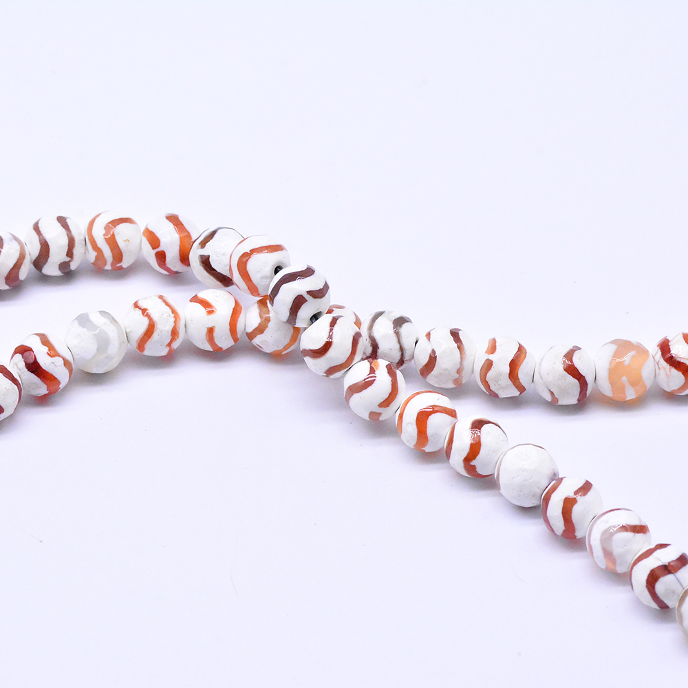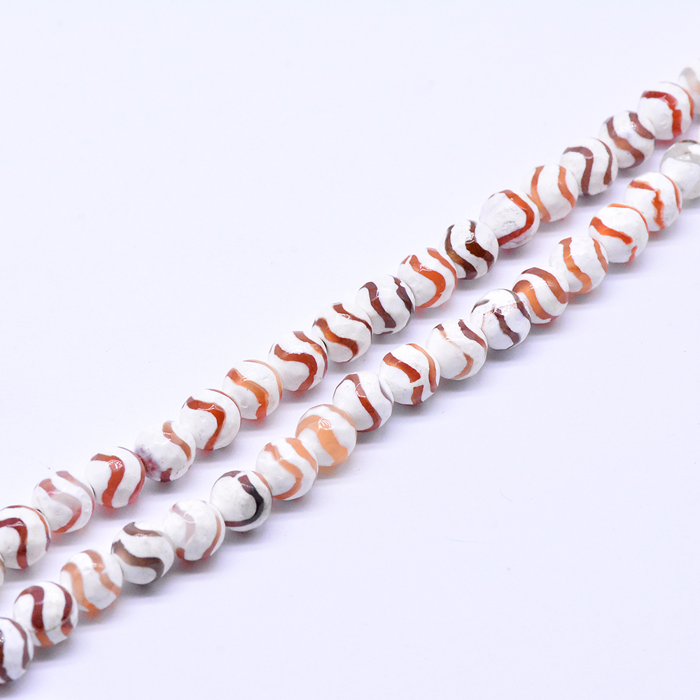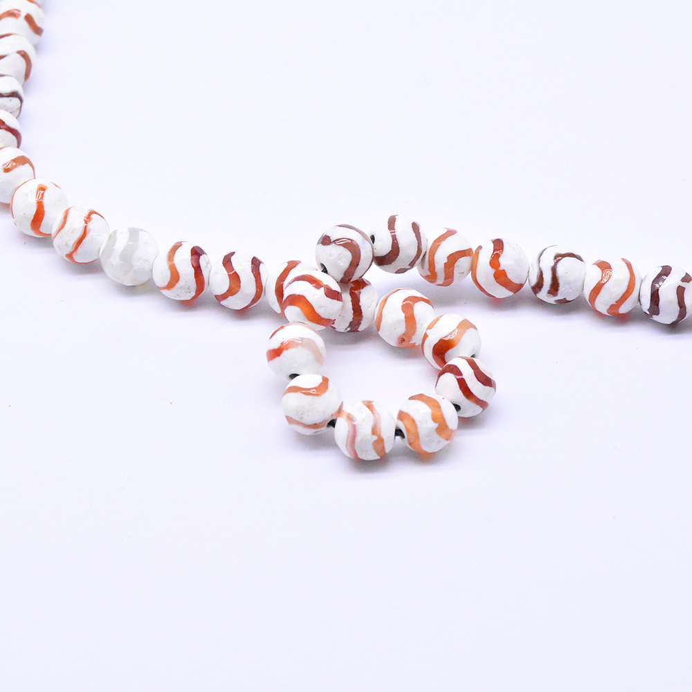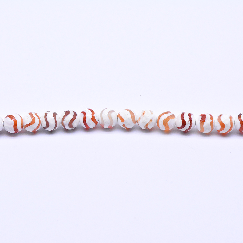 天然石ビーズ 瑪瑙 丸型カット オレンジレッド+ホワイト 8mm【1連(約48ヶ)】