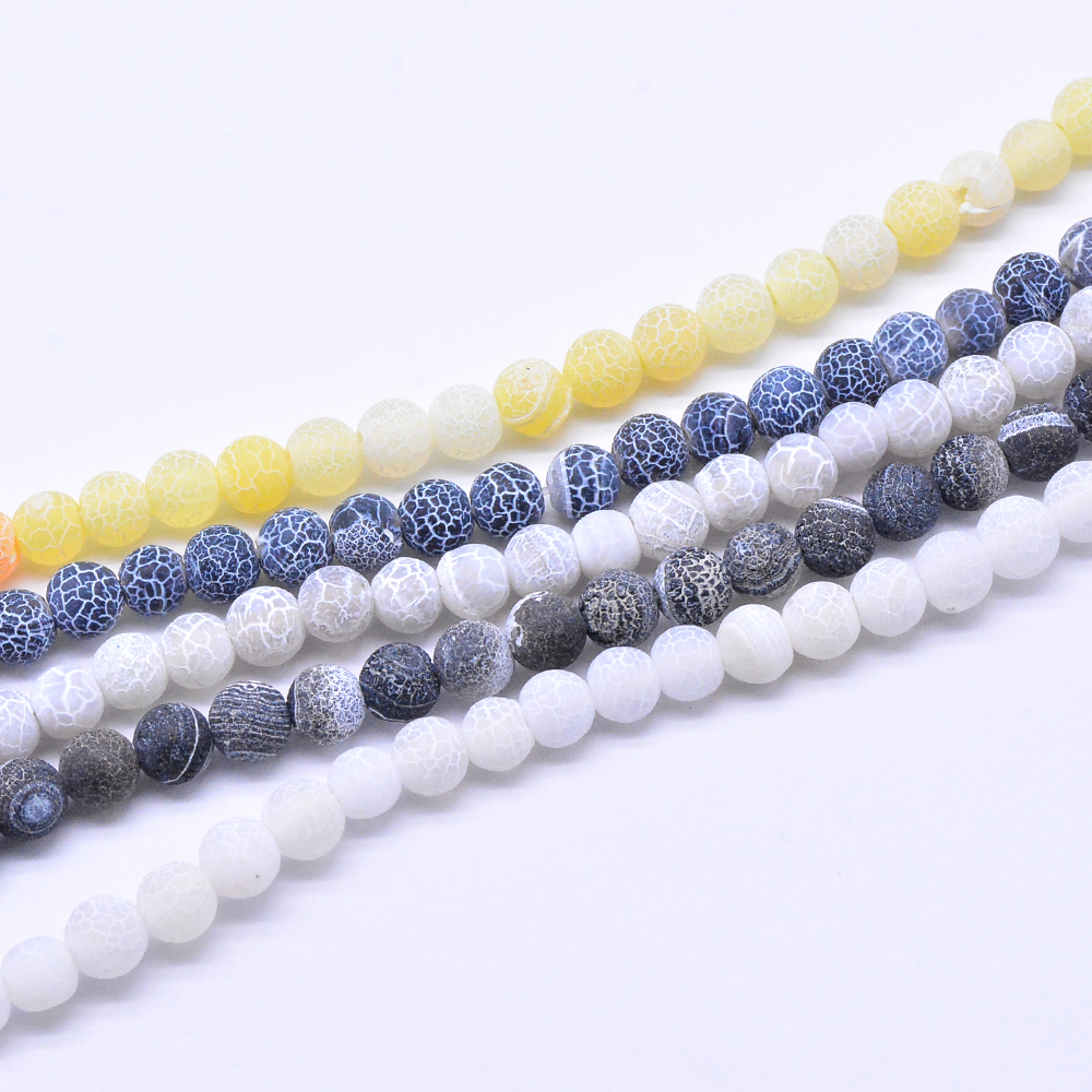 天然石ビーズ クラック瑪瑙ビーズ連売り ラウンド6mm 【1連(約66個)】
