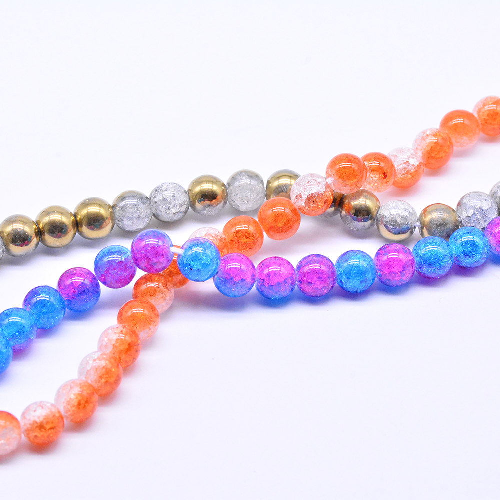 合成クラック水晶 丸玉 二色8mm【1連(約50ヶ)】