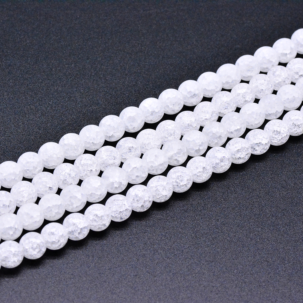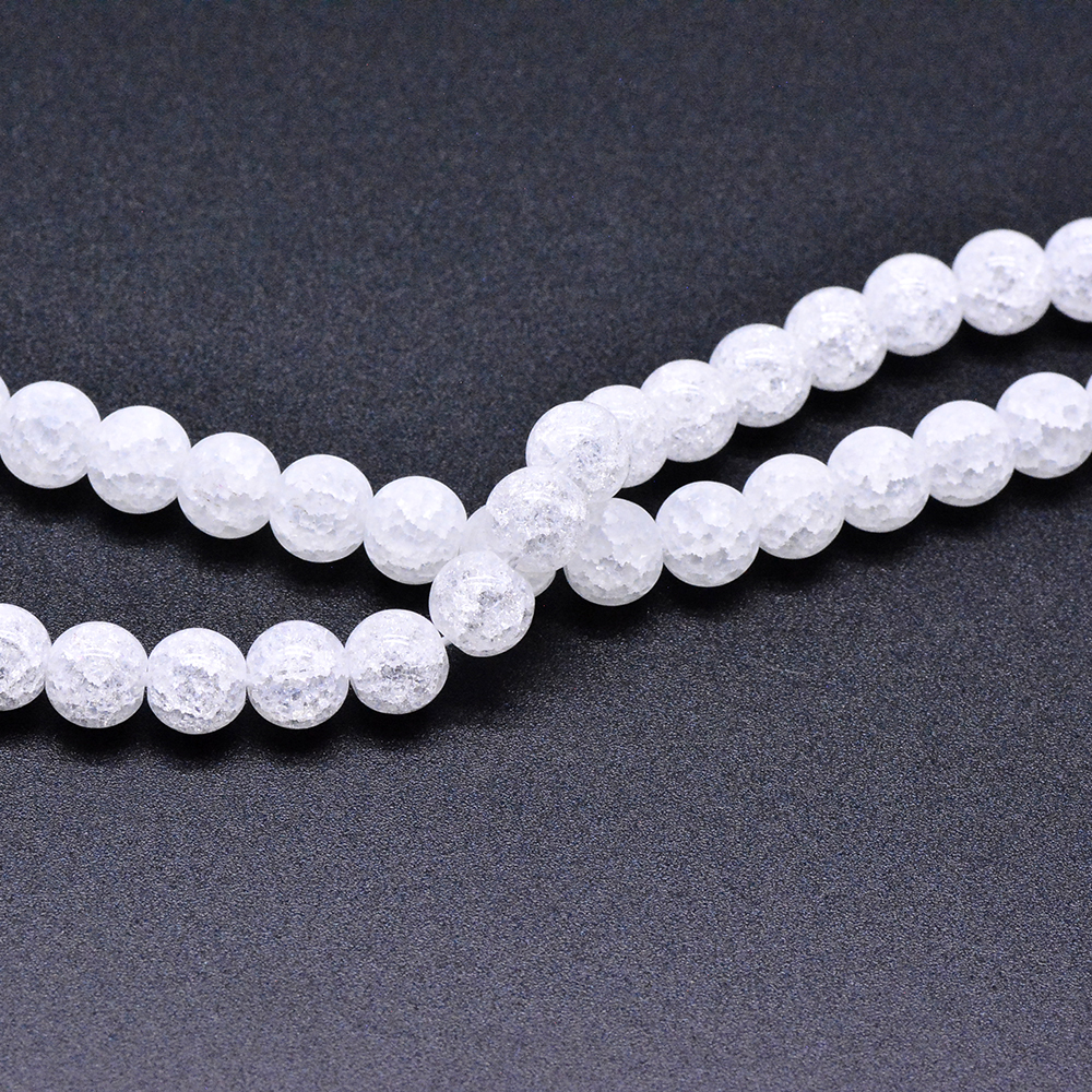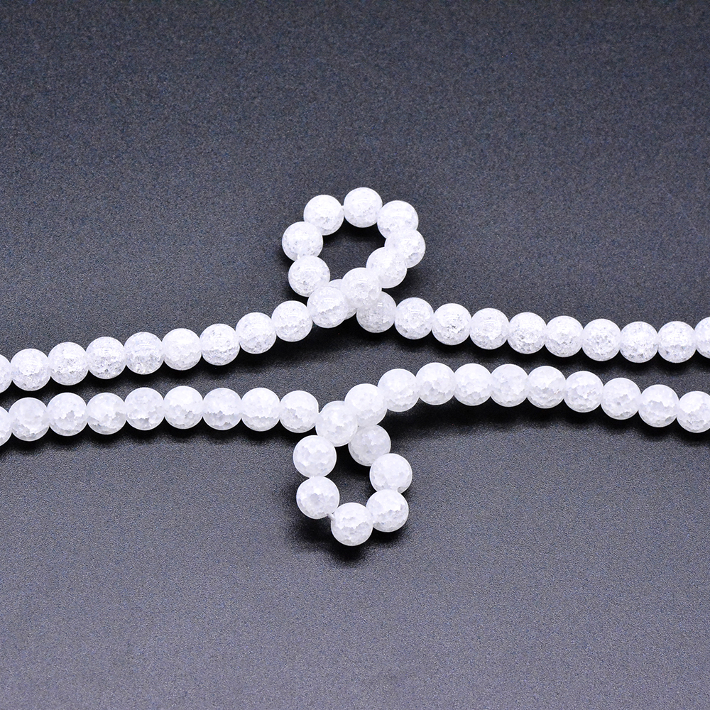 合成クラック水晶 丸玉 スクラブ ホワイト 7×8mm【1連(約51ヶ)】
