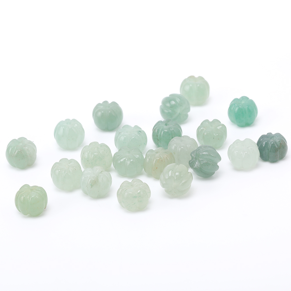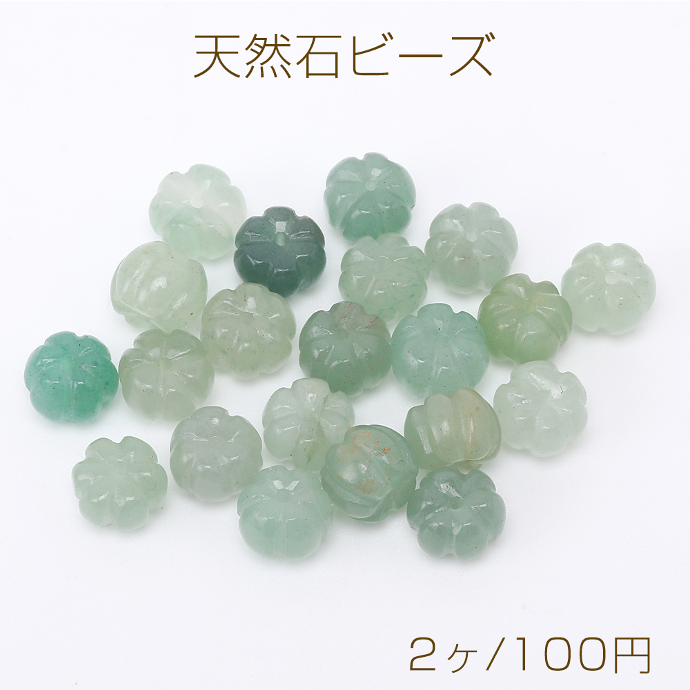 天然石ビーズ グリーンアベンチュリン ラウンドビーズ筋入り 8×10mm(2ヶ)