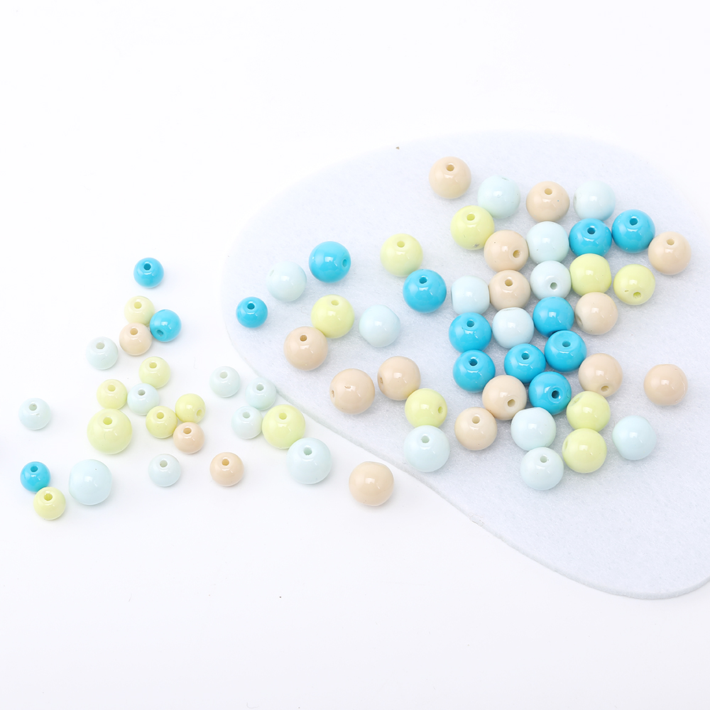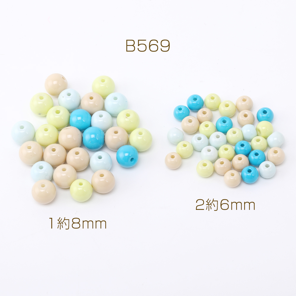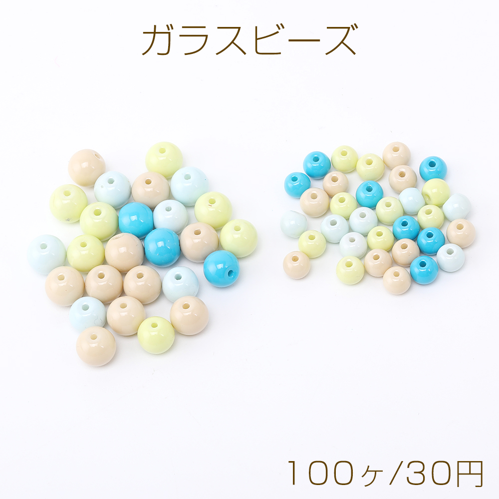 ガラスビーズ 塗装丸玉ビーズ 2サイズ カラーミックス
