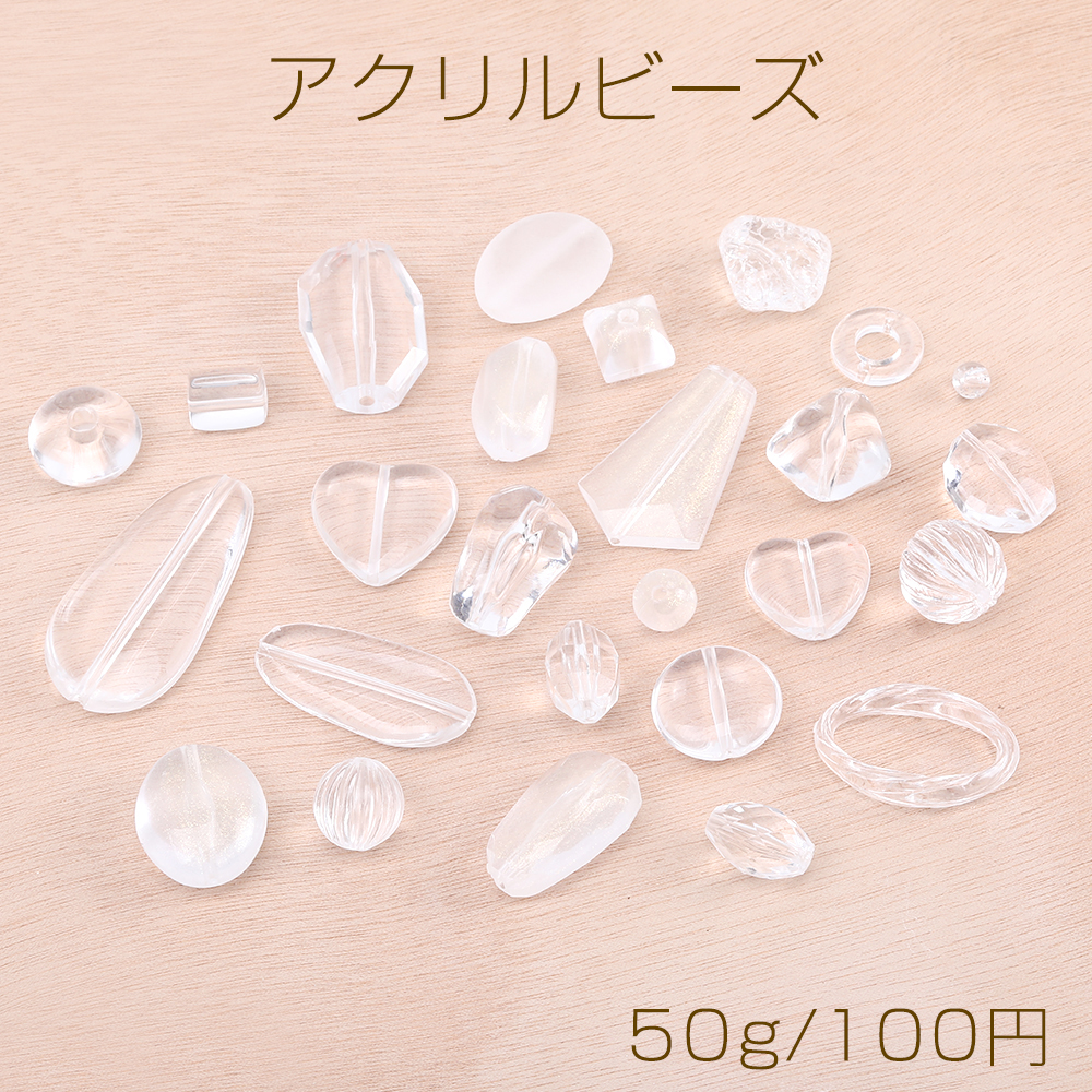 アクリルビーズ アクリルクリアビーズ クリアミックス 50g(約20ヶ)