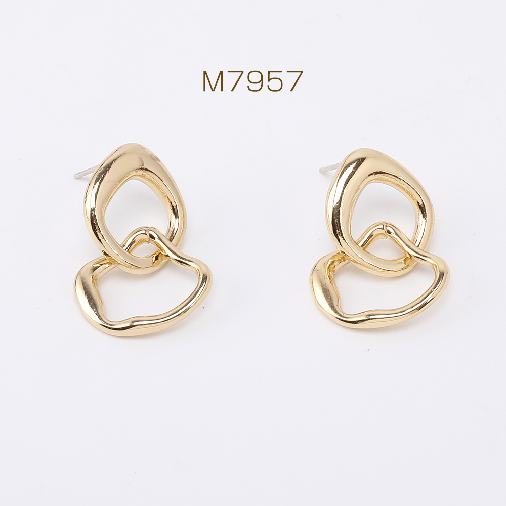 高品質デザインピアス 2連不規則チェーンピアス ゴールド(2ヶ)