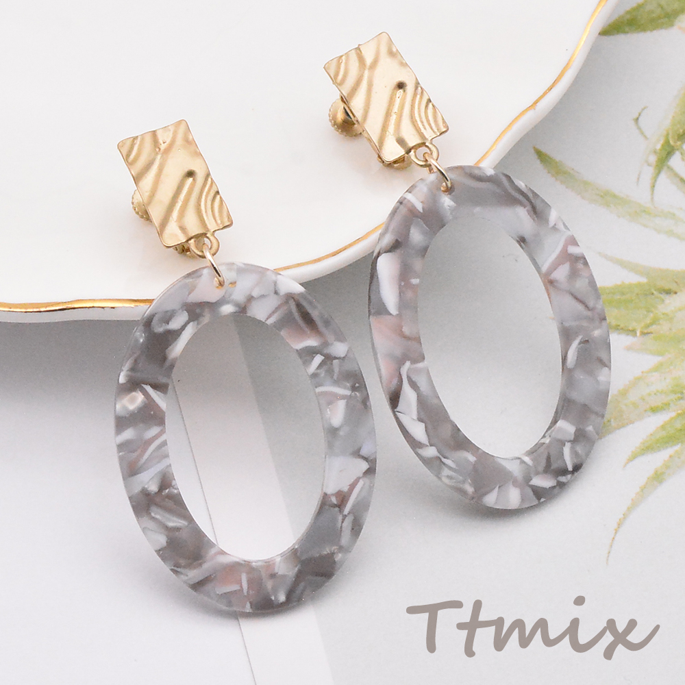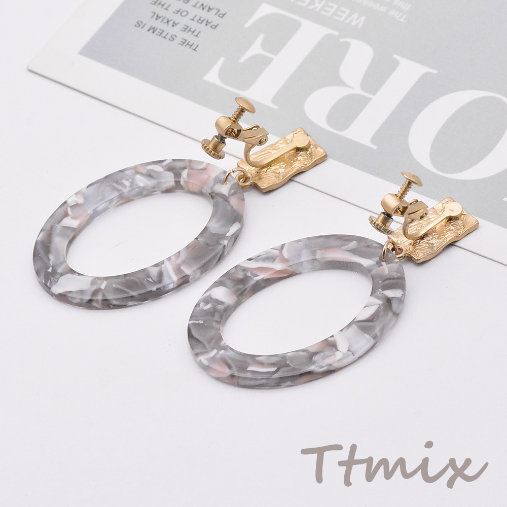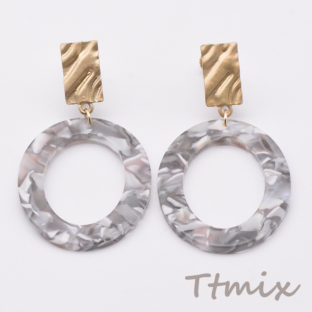 マーブル柄フープイヤリング