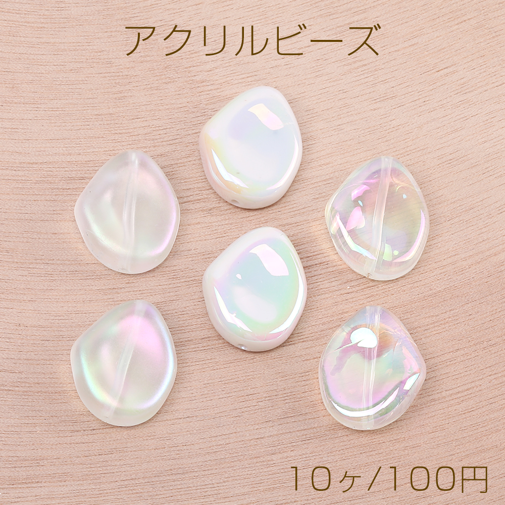 高品質夏カラーアクリルビーズ オーロラカラーアクリルビーズ 不規則しずく型 19×24mm(10ヶ)