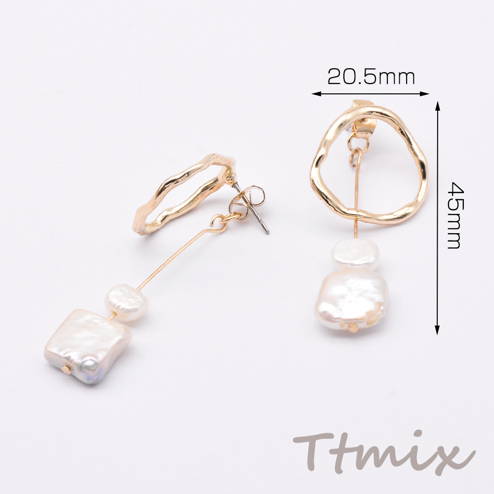 素材:チャーム→合金製、淡水パール 貼付部→合金製 ピアスポスト→合金製