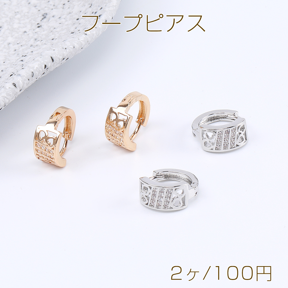 高品質開閉式フープピアス ハート型&ジルコニアピアス 6.5×14mm(2ヶ)