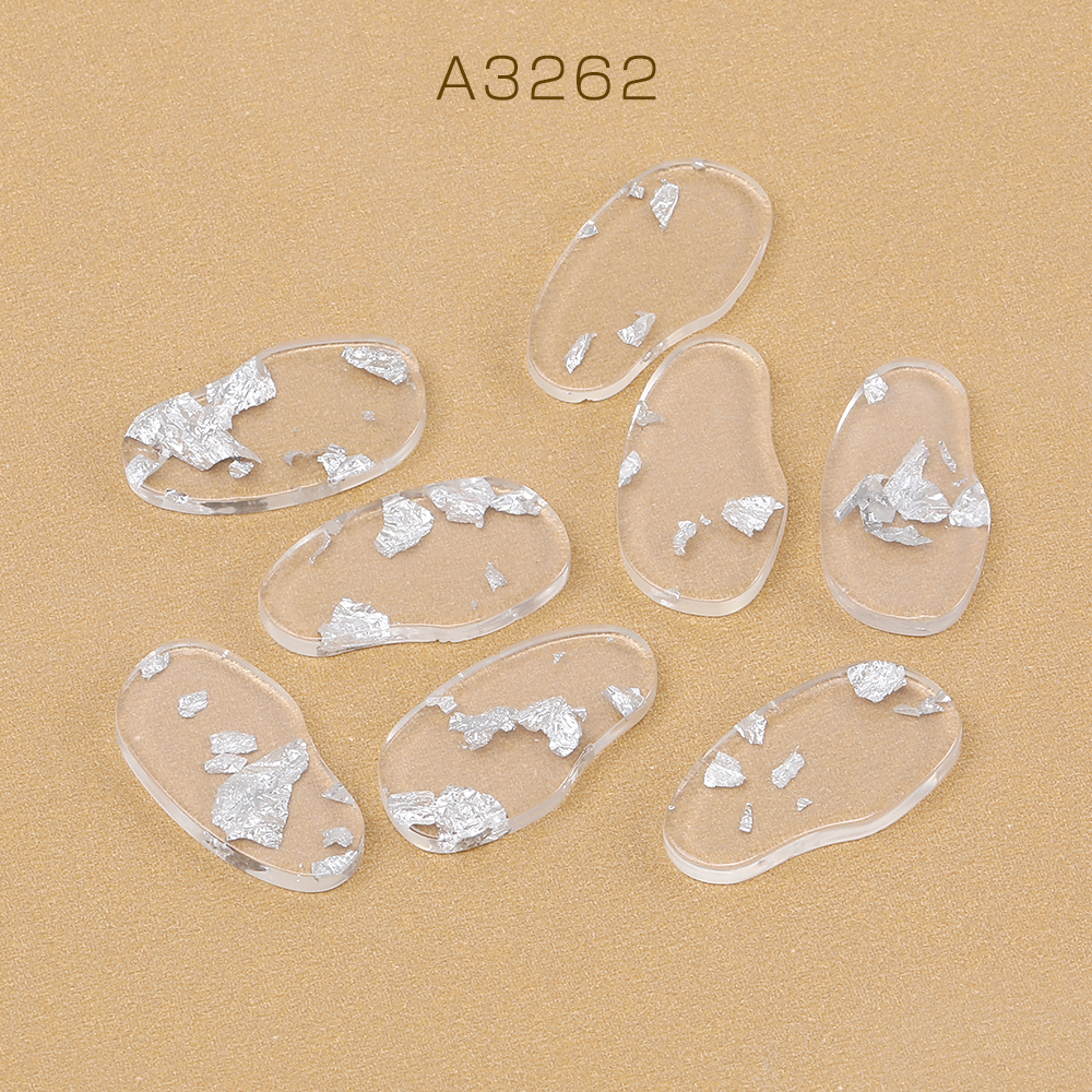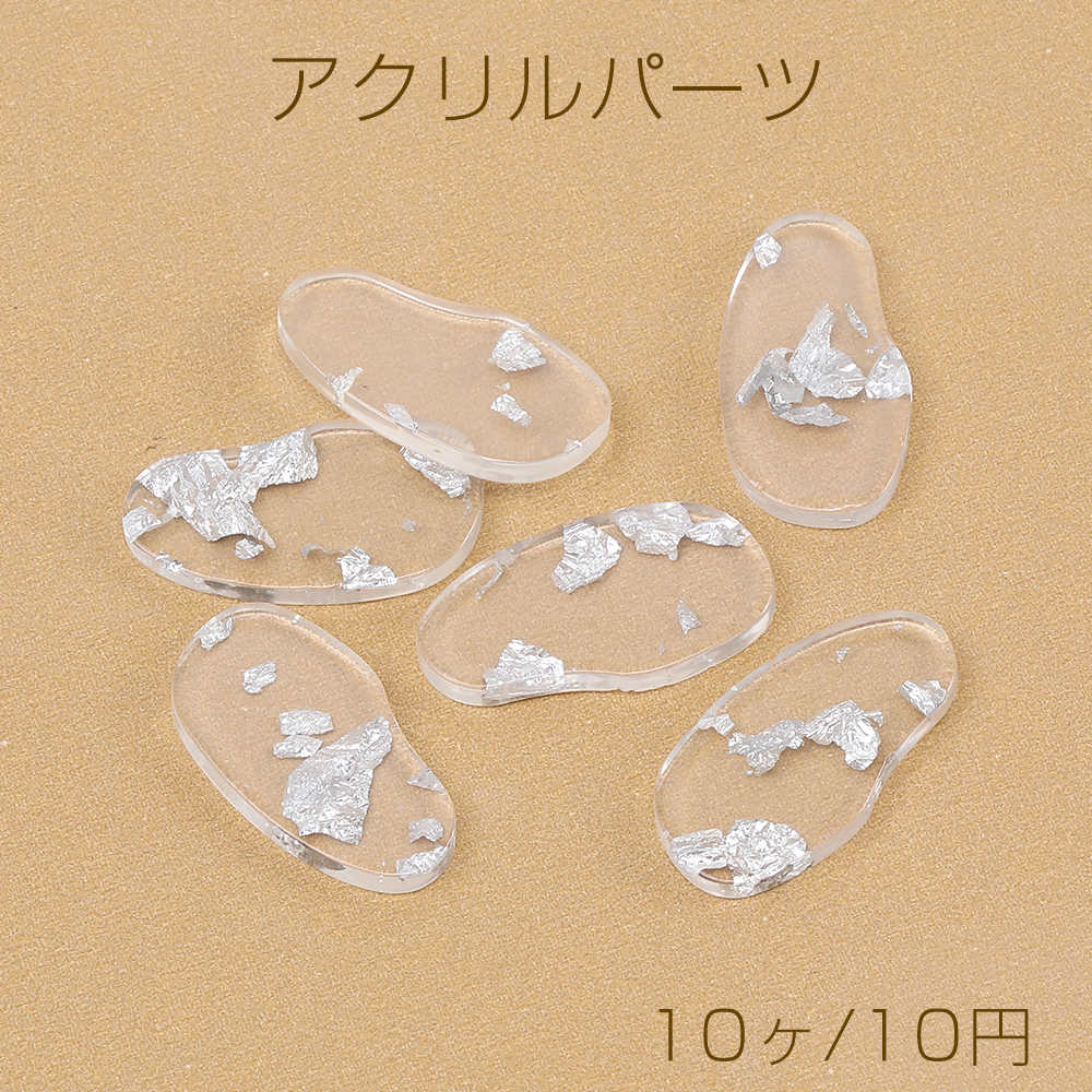 アクリルパーツ 不規則型 穴なし 15×28mm クリア 銀箔入り(10ヶ)