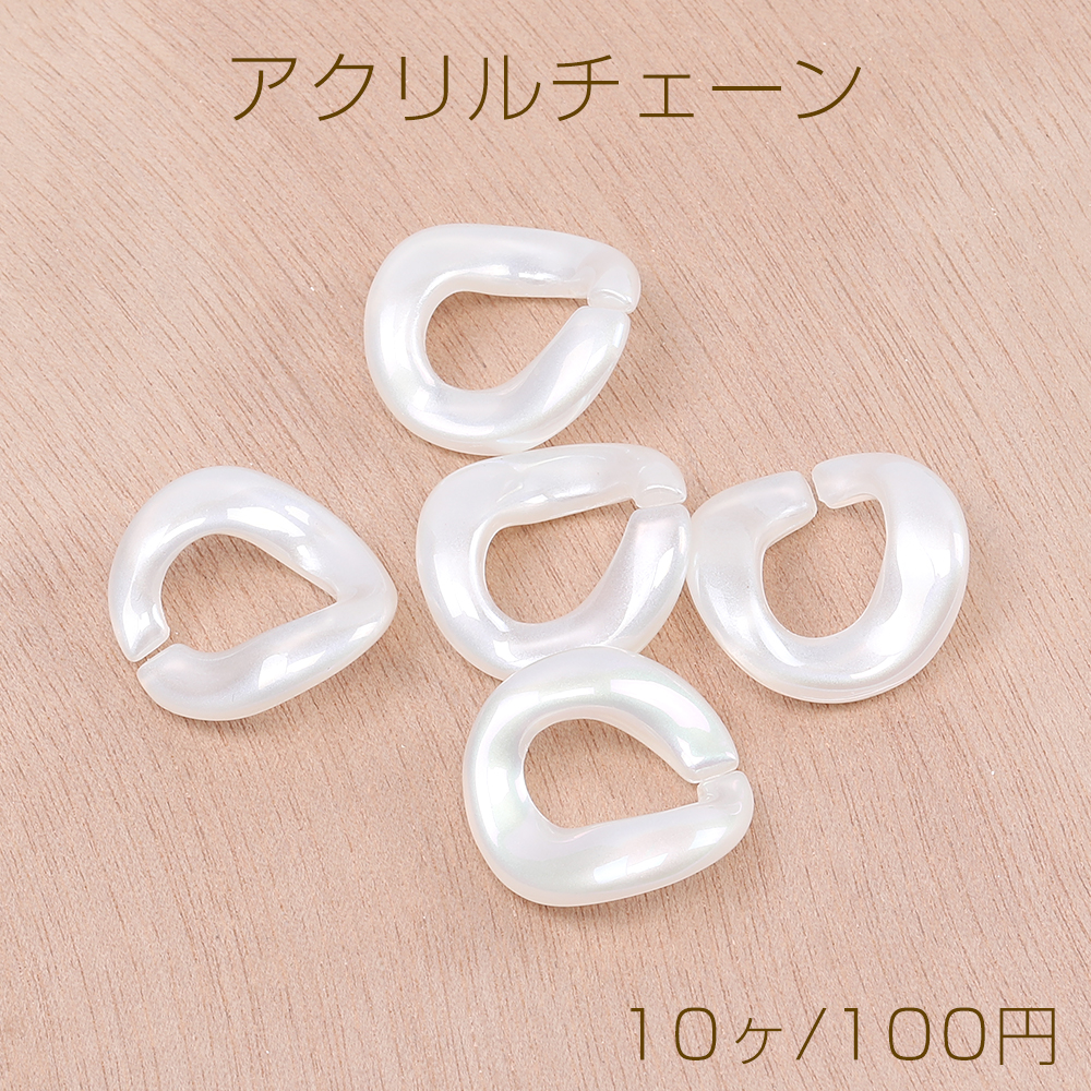 高品質アクリルチェーンパーツ ツイスト 23×23mm オーロラホワイトABカラー(10ヶ)