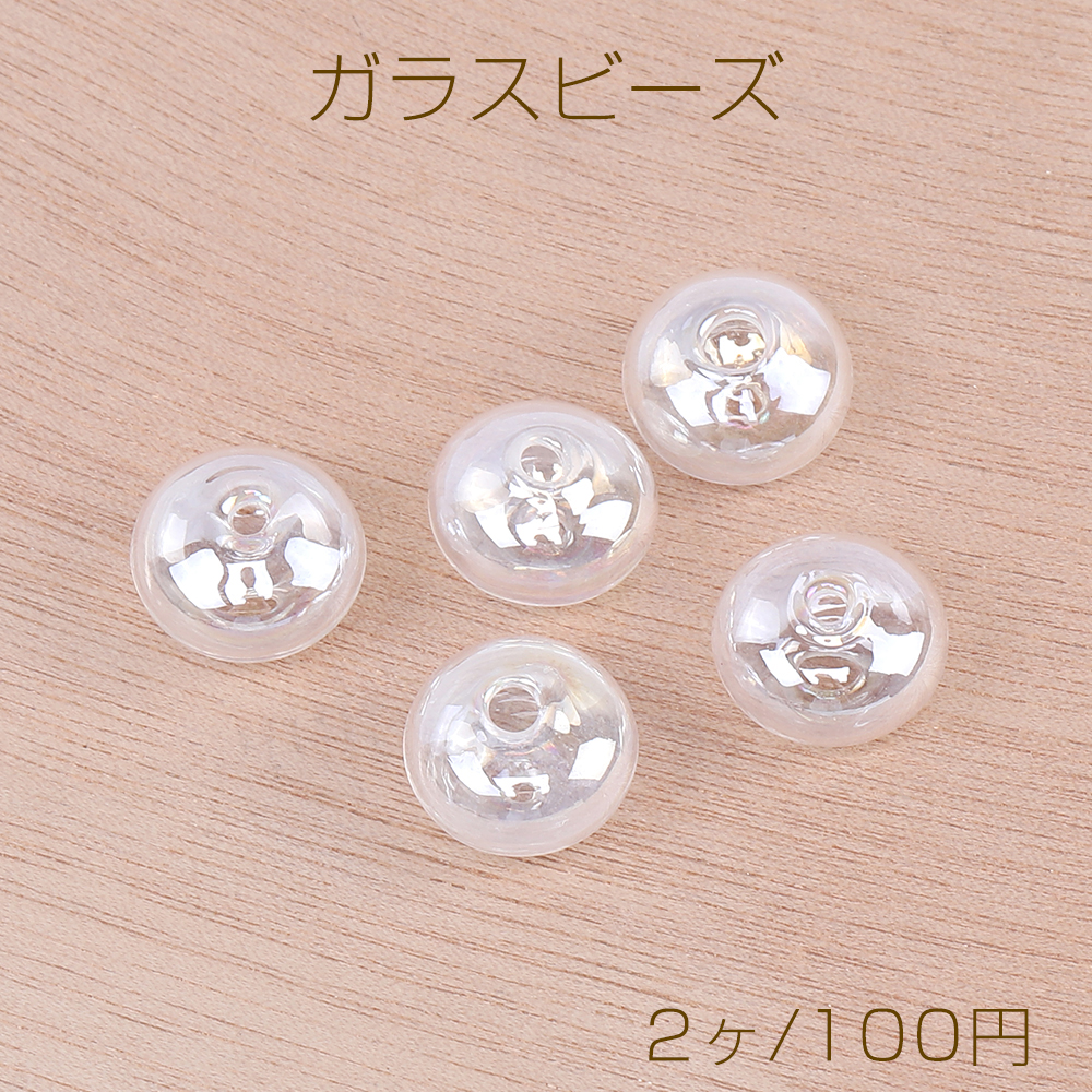 吹きガラスドームビーズ オーロラカラーガラスドームビーズ 軽いクリアビーズ ビーズガラスボール ボタンビーズ 9×13mm 通し穴 ABカラー(2ヶ)