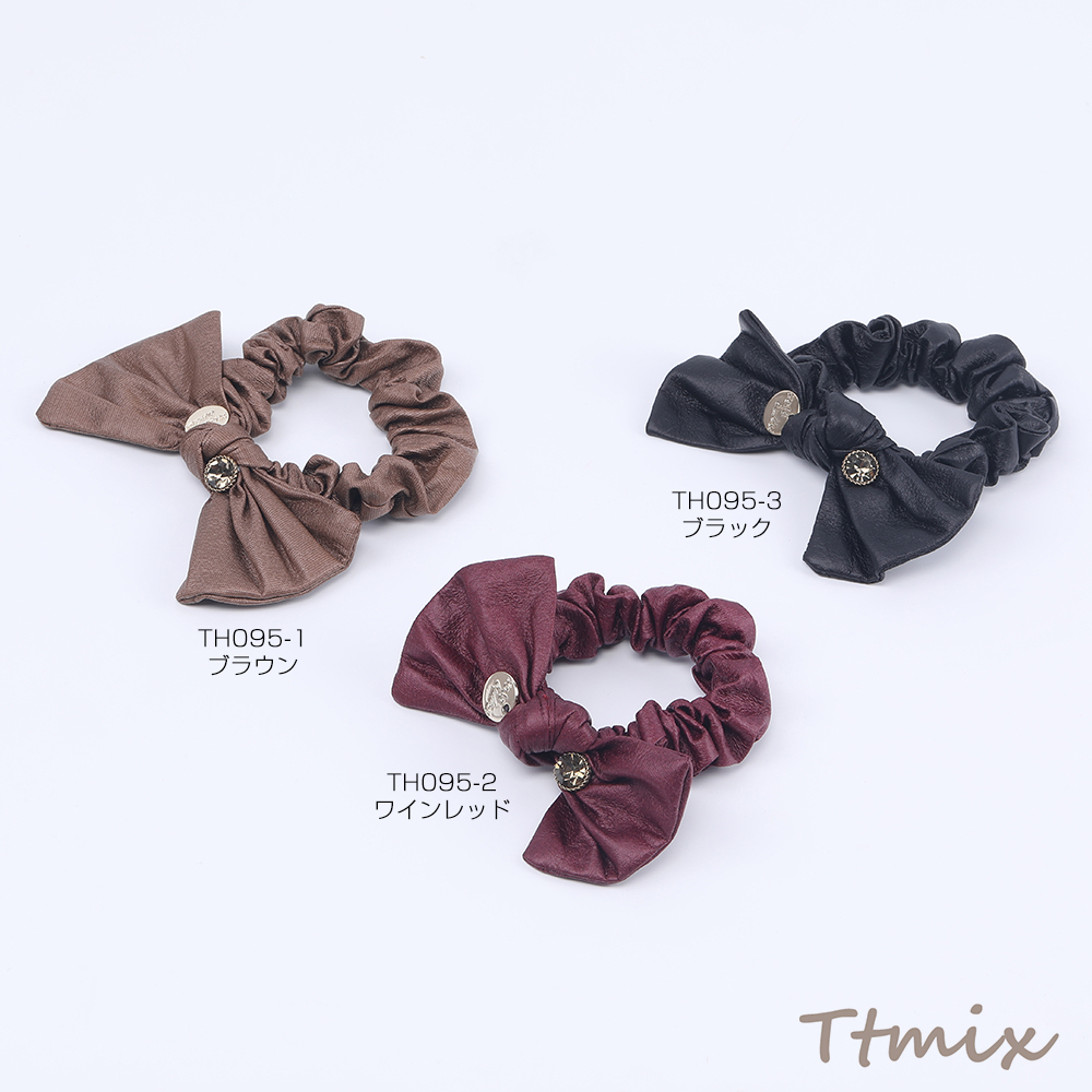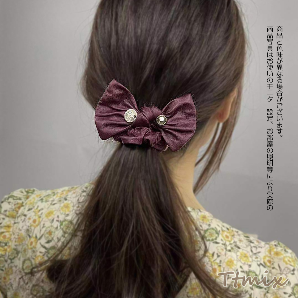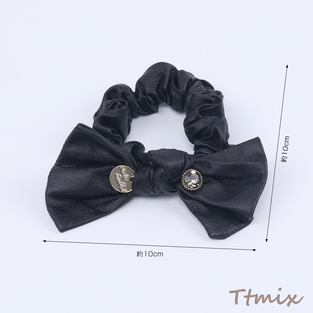 PUレザーシュシュ ヘアアクセサリー リボン 10cm(1ヶ)