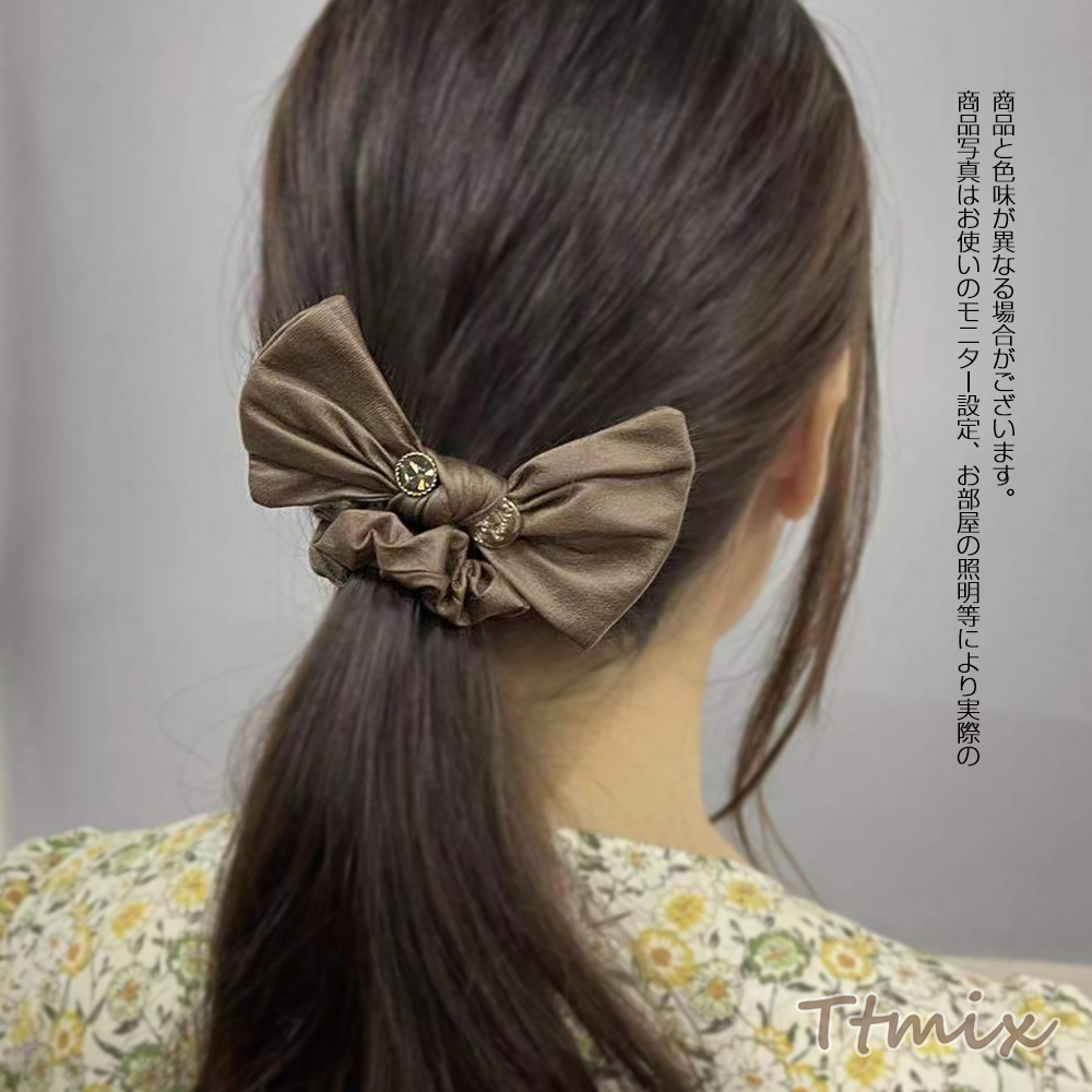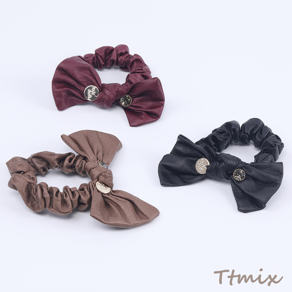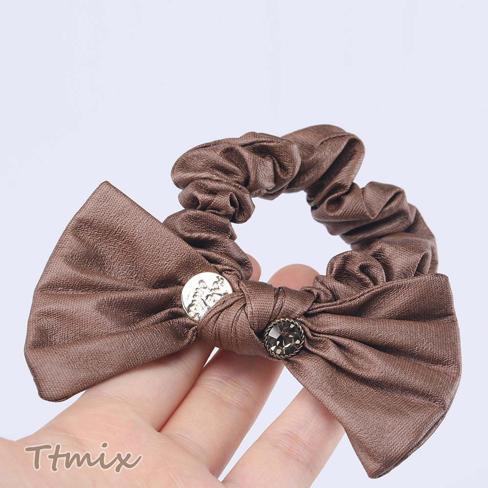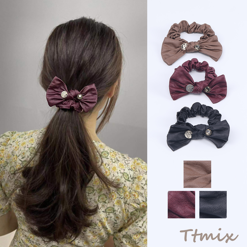 PUレザーシュシュ ヘアアクセサリー リボン 10cm(1ヶ)