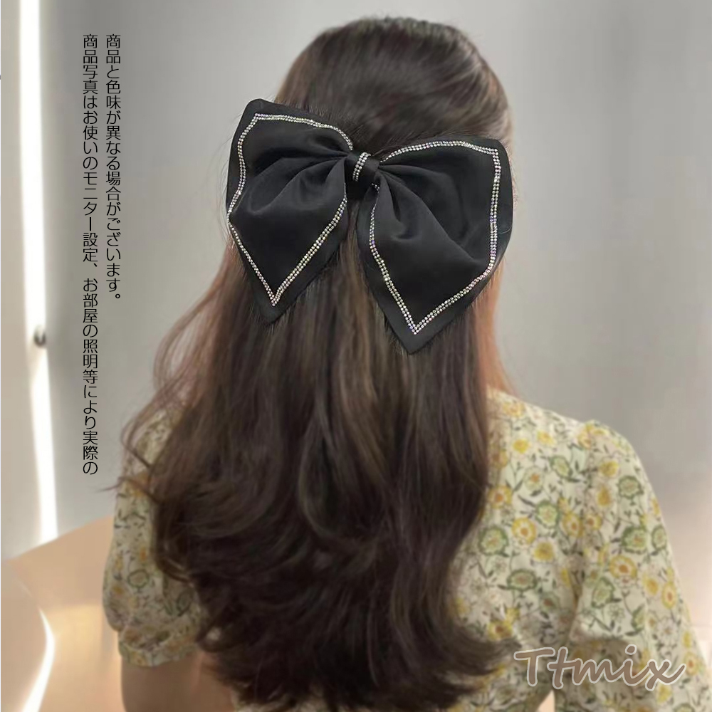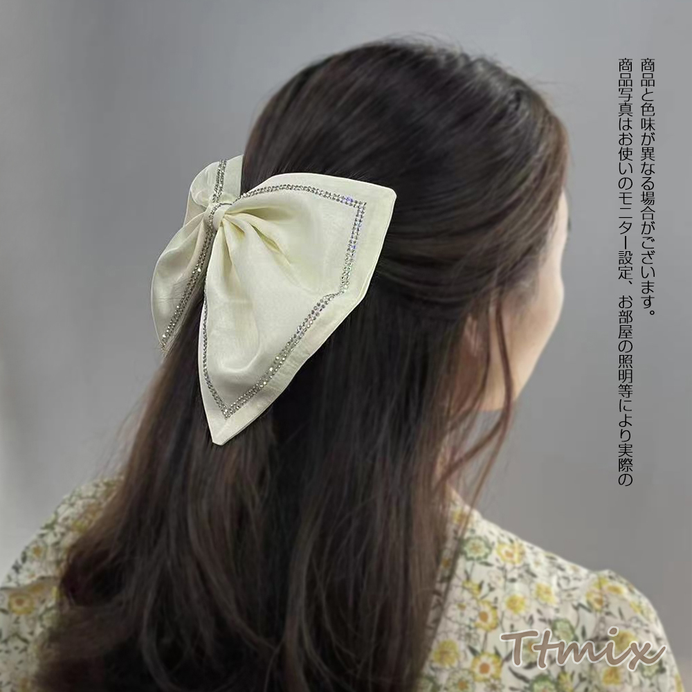 ヘアバレッタ ヘアアクセサリー リボン ストーン付き 15×22cm(1ヶ)