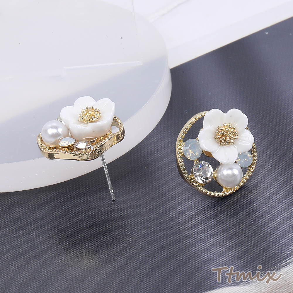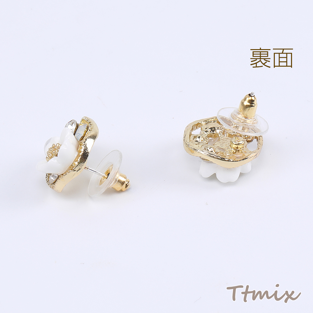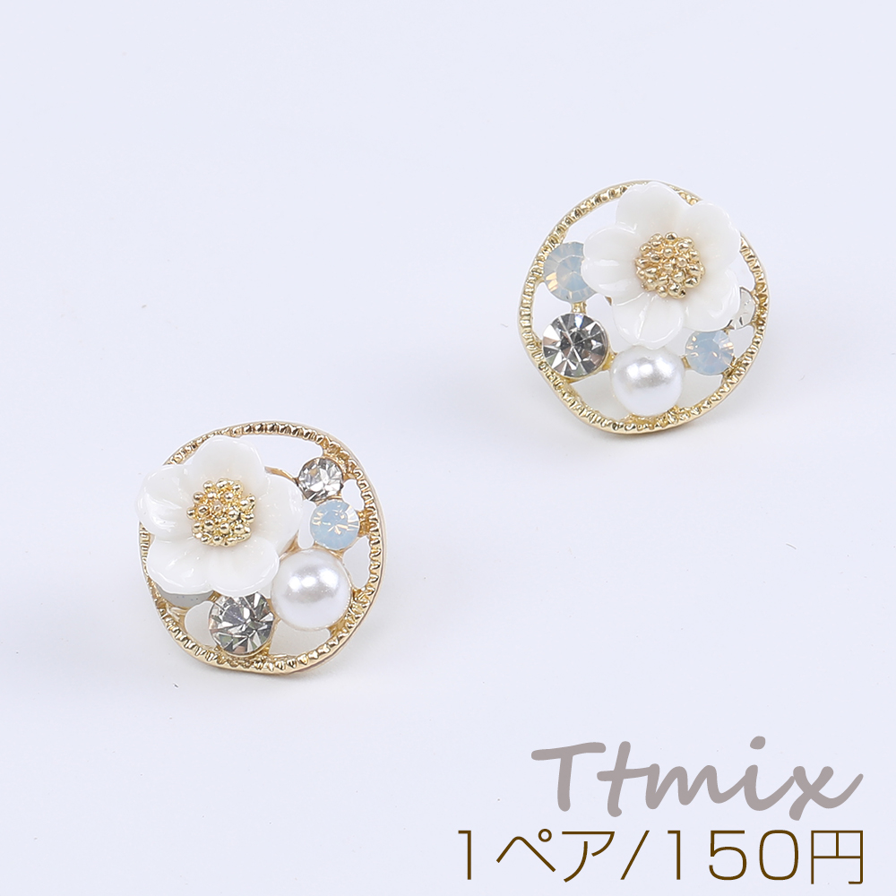 デザインピアス 変形ラウンドピアス 樹脂フラワーピアス 15mm ゴールド(1ペア)
