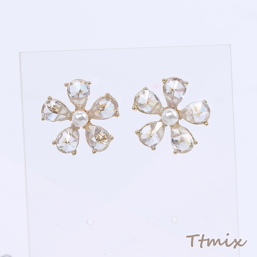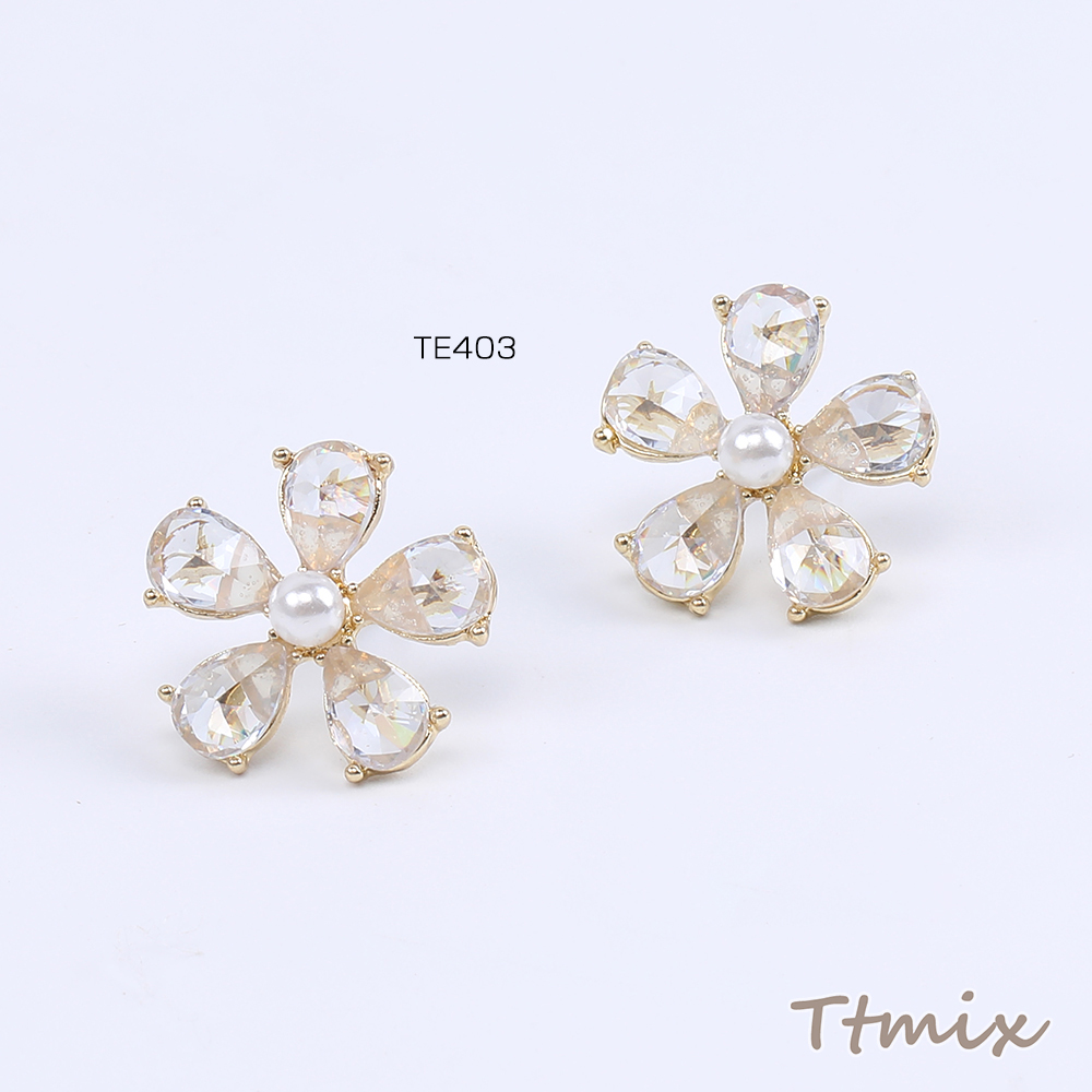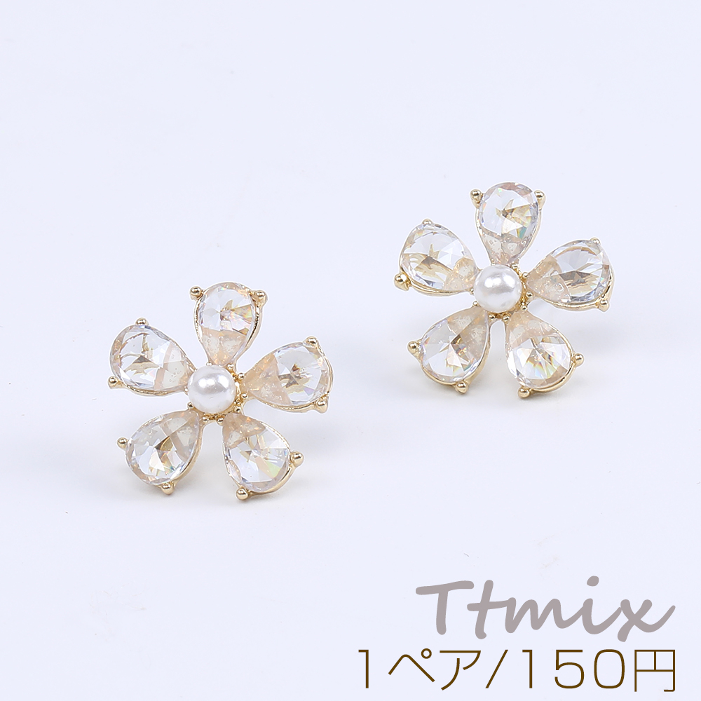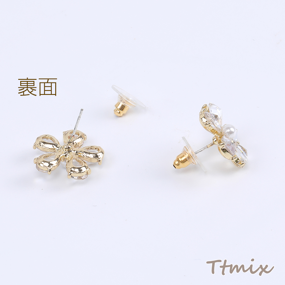 デザインピアス ジルコニアピアス フラワーピアス 17mm ゴールド(1ペア)