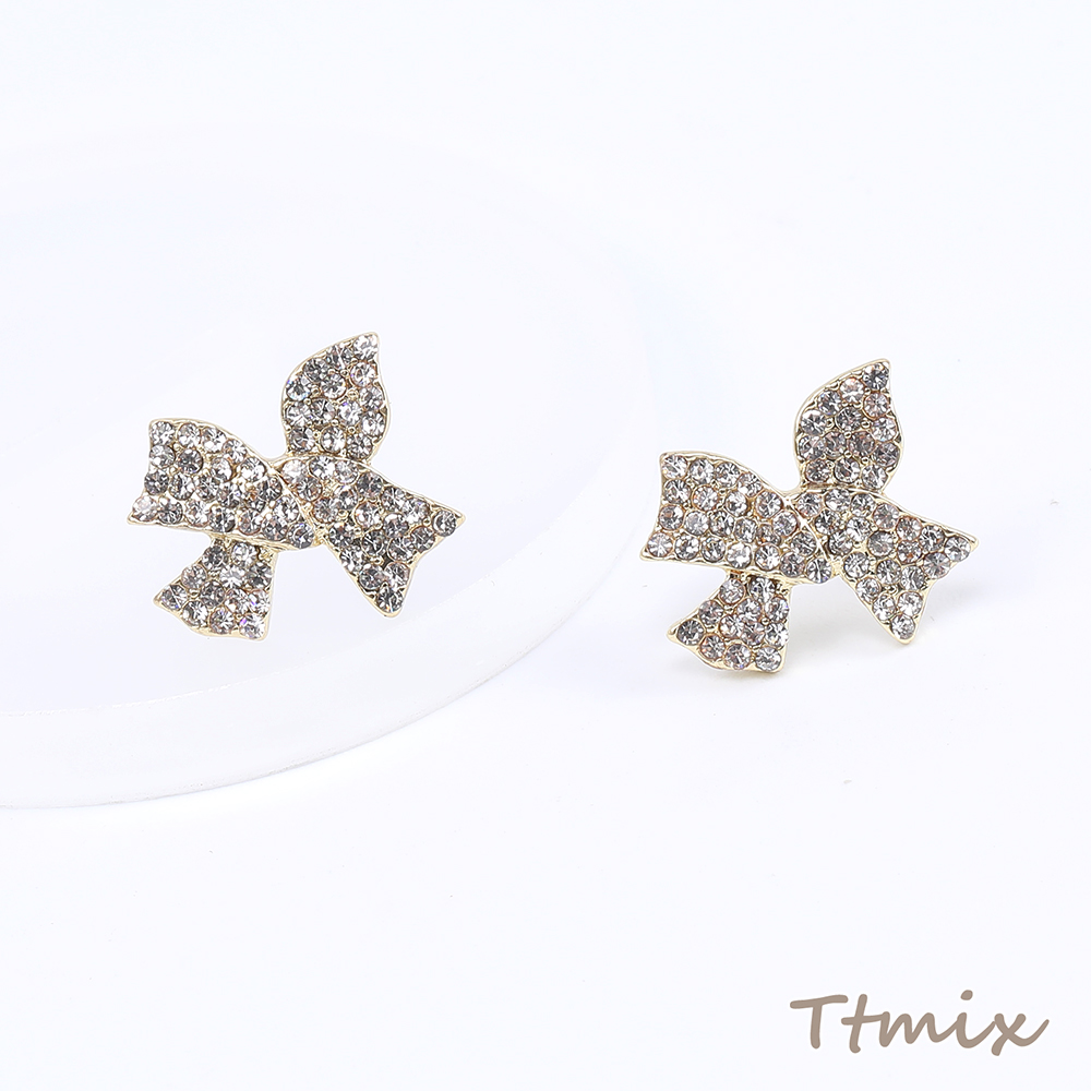 デザインピアス ラインストーンピアス リボンピアス 15×17mm ゴールド(1ペア)