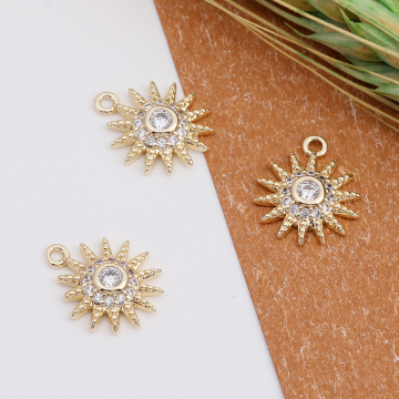 ジルコニアチャーム フラワーコネクターチャーム 2カン付き 7×15.5mm ゴールド クリスタル(2ヶ)