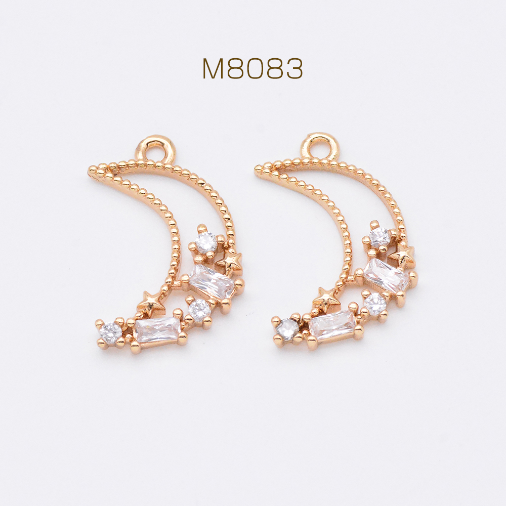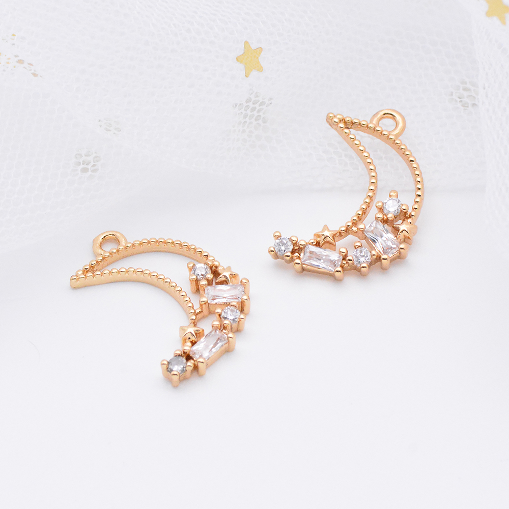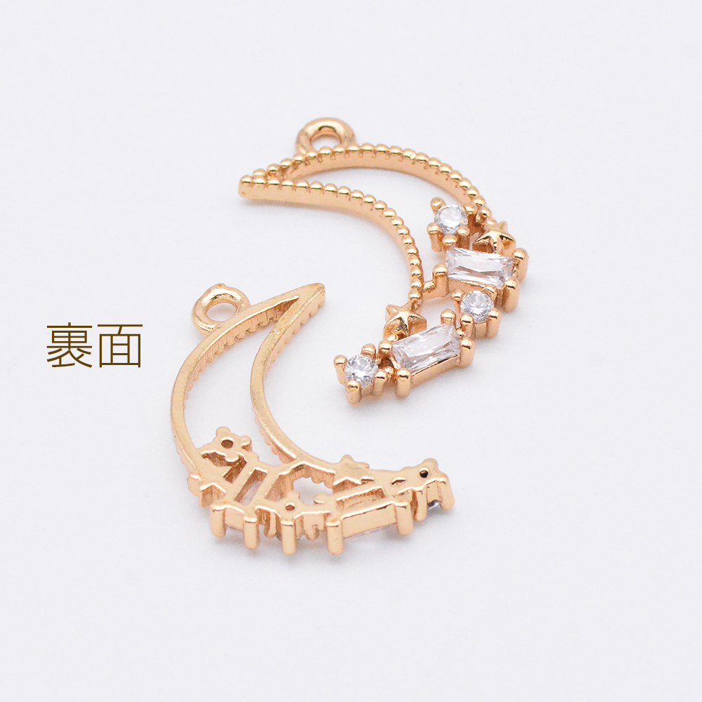 ジルコニアチャーム 星と月チャーム 1カン付き 14×21.5mm ゴールド クリスタル(2ヶ)
