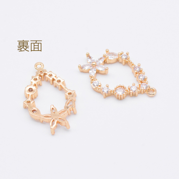 ジルコニアチャーム しずく型チャーム フラワー付き 1カン付き 16×26mm ゴールド クリスタル(2ヶ)