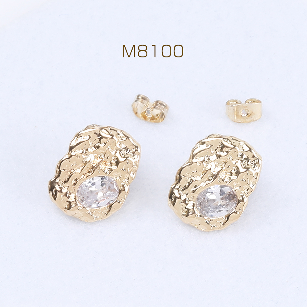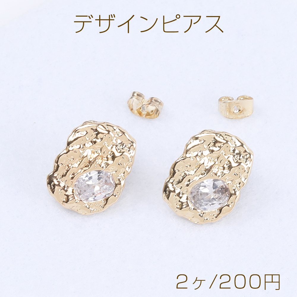 デザインピアス ジルコニアピアス オーバルピアス 14×18mm ゴールド クリスタル(2ヶ)