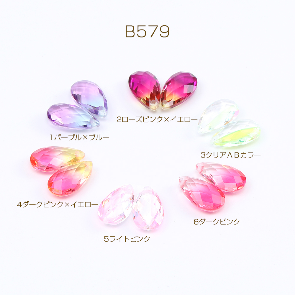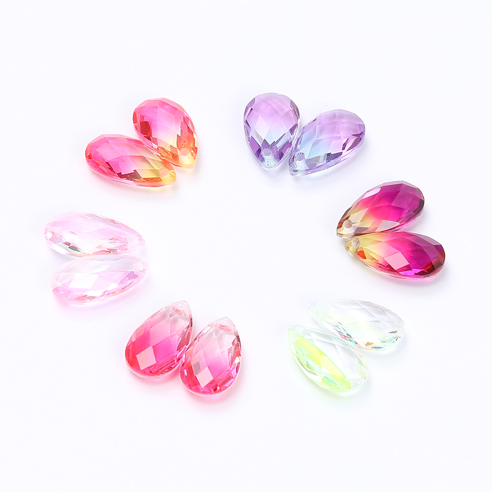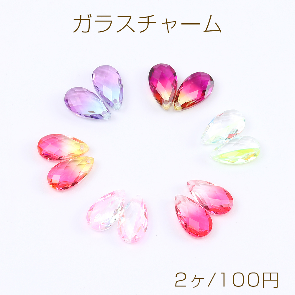 高品質ガラスチャーム しずく型カット 1穴 9×16mm(2ヶ)
