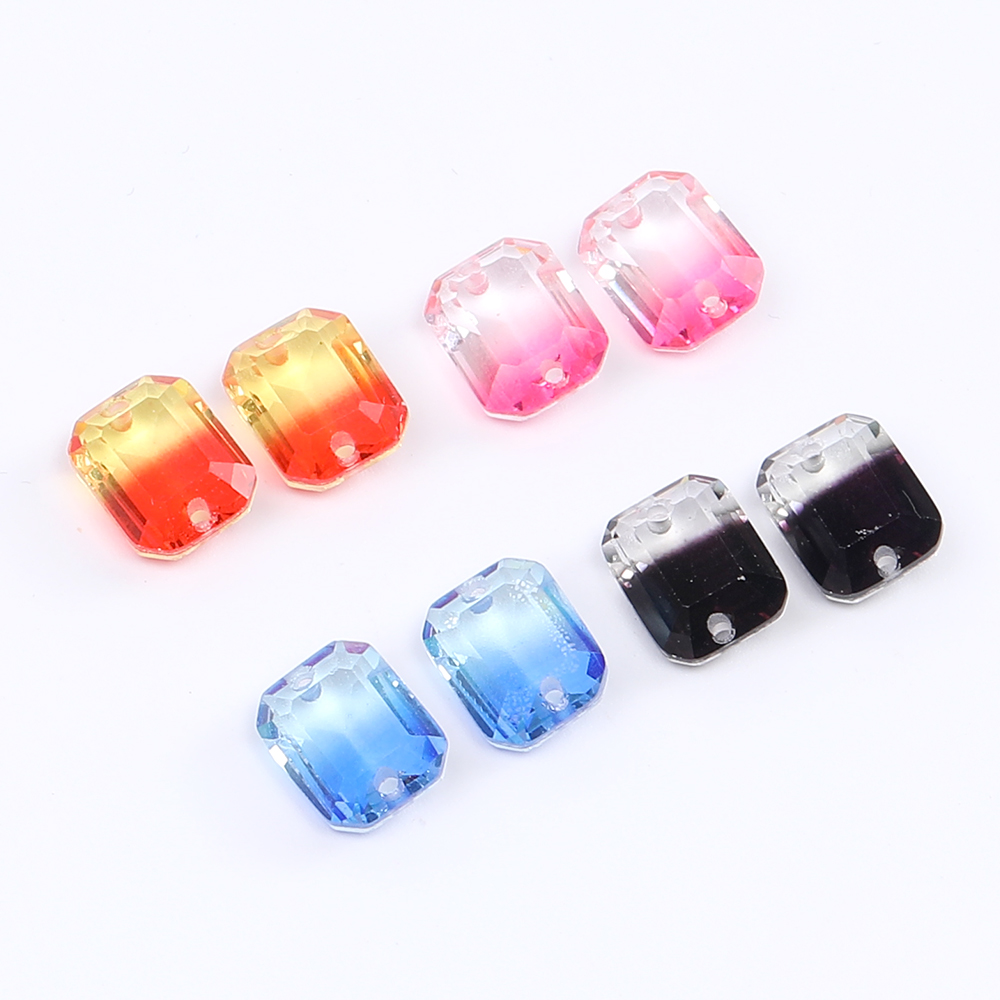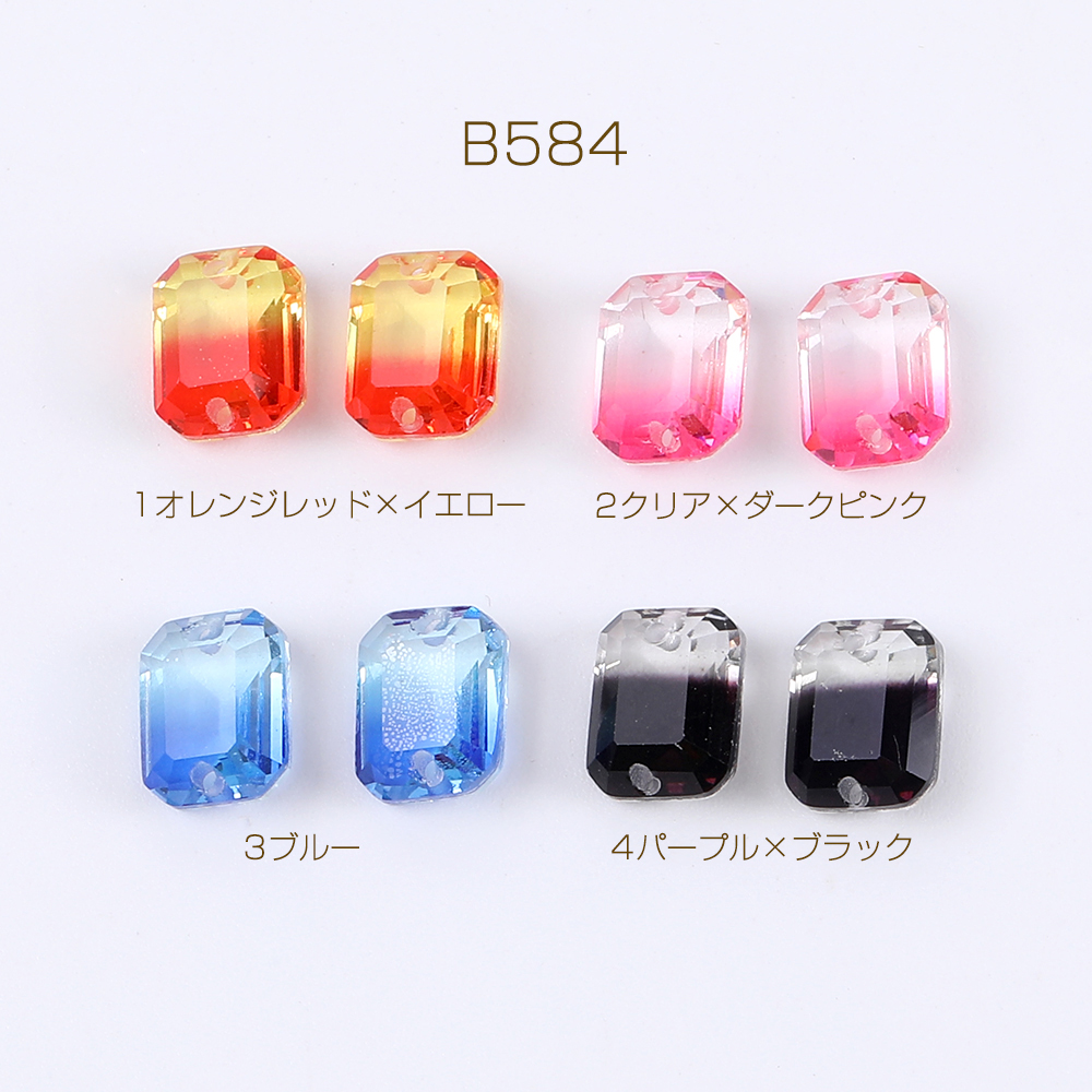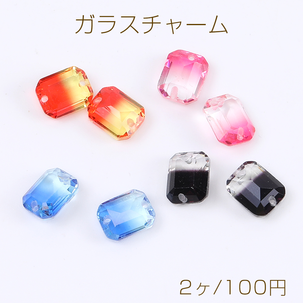 高品質ガラスコネクターチャーム 長方形型カット 2穴 8×10mm(2ヶ)
