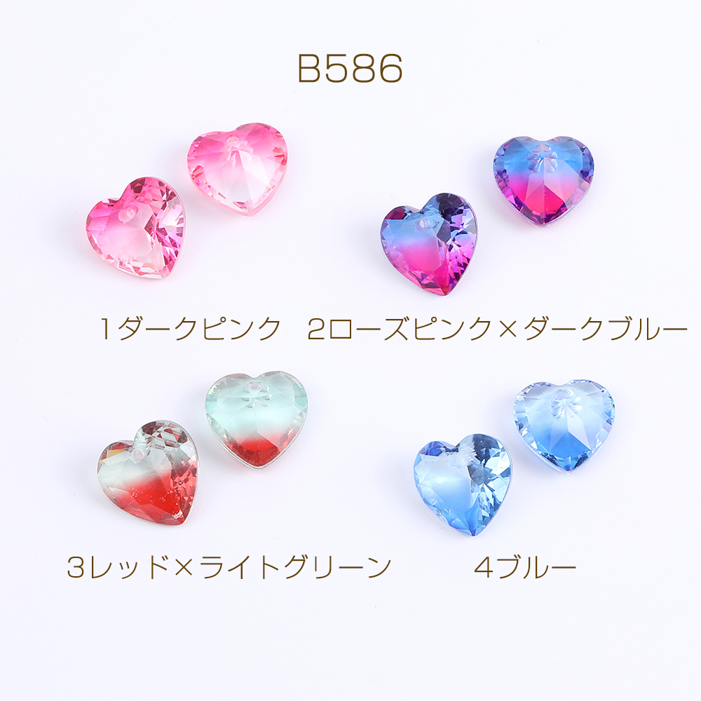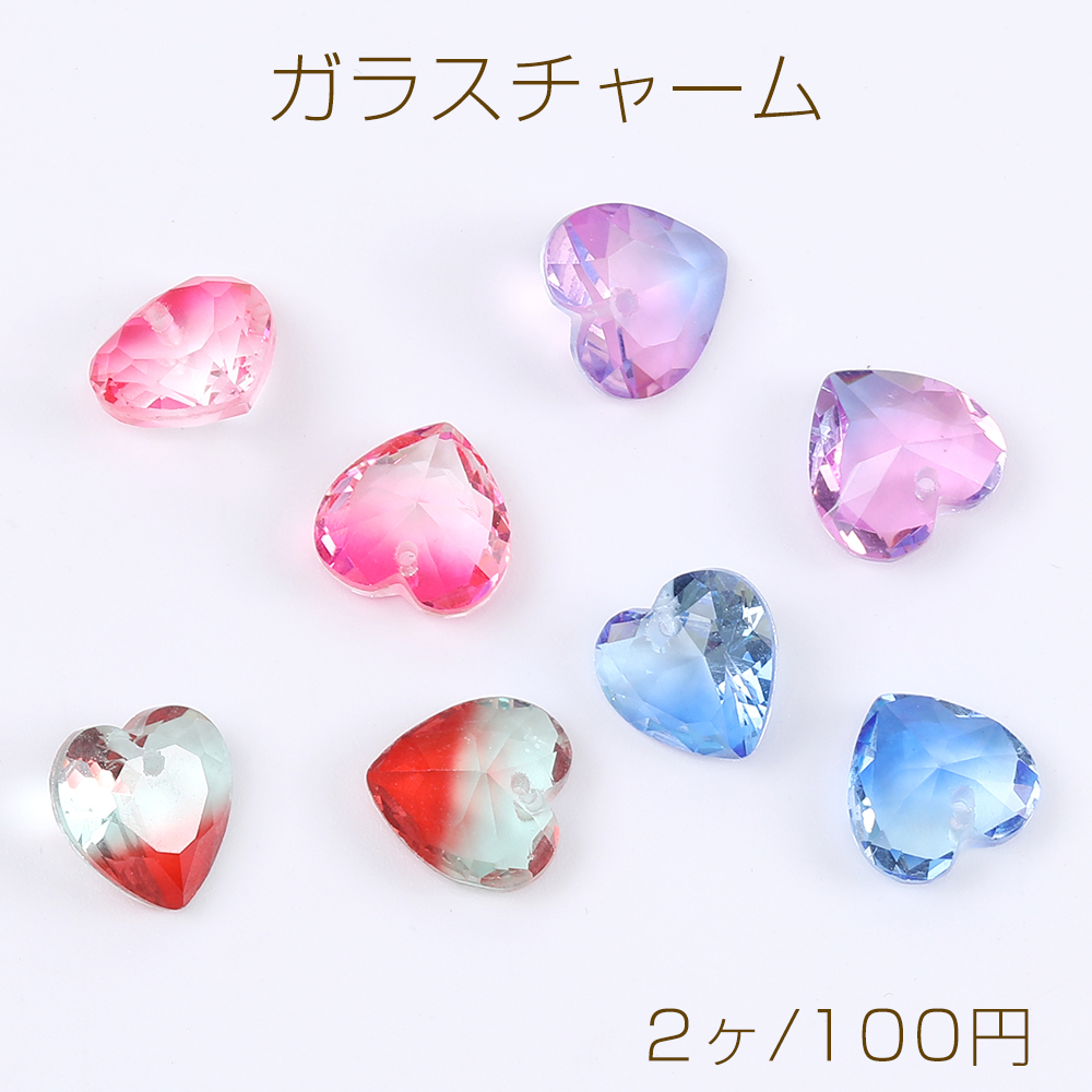 高品質ガラスチャーム ハート型カット 1穴 12mm(2ヶ)