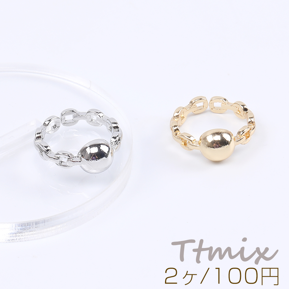 デザインリング 指輪 チェーンリング 幅約8mm ゴールド&ロジウム 2色セット(2ヶ)
