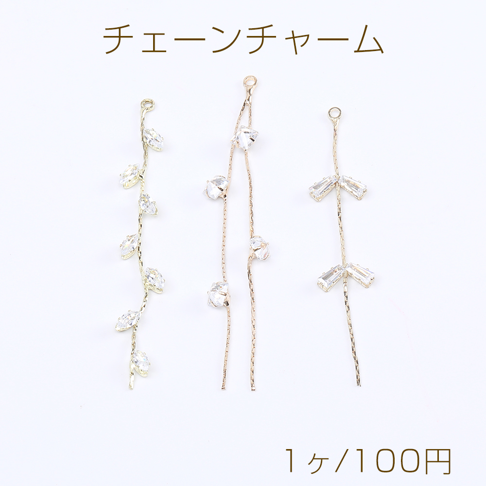 チェーンチャーム ラインストーン付きチャーム 1カン付き 全3種 ゴールド(1ヶ)