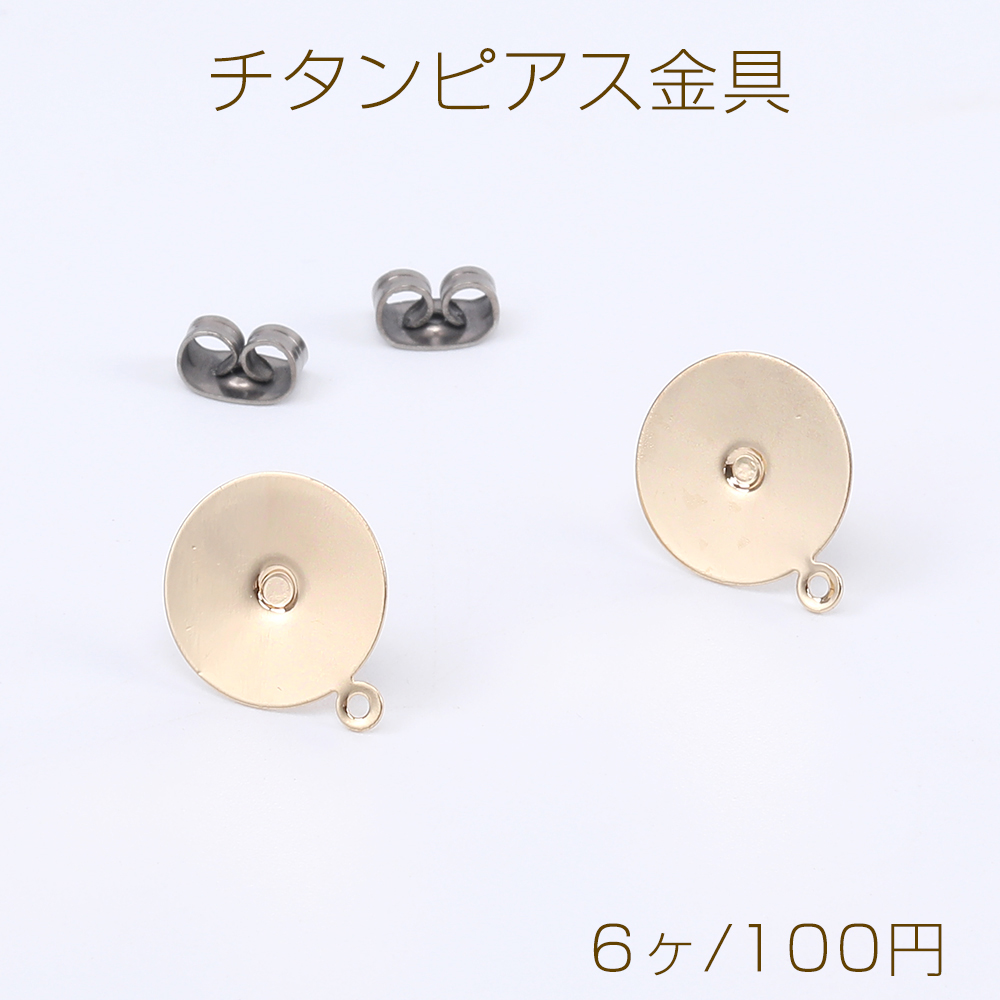 チタンピアス金具 丸皿 12mm 1カン付き ゴールド(6ヶ)