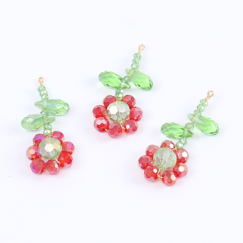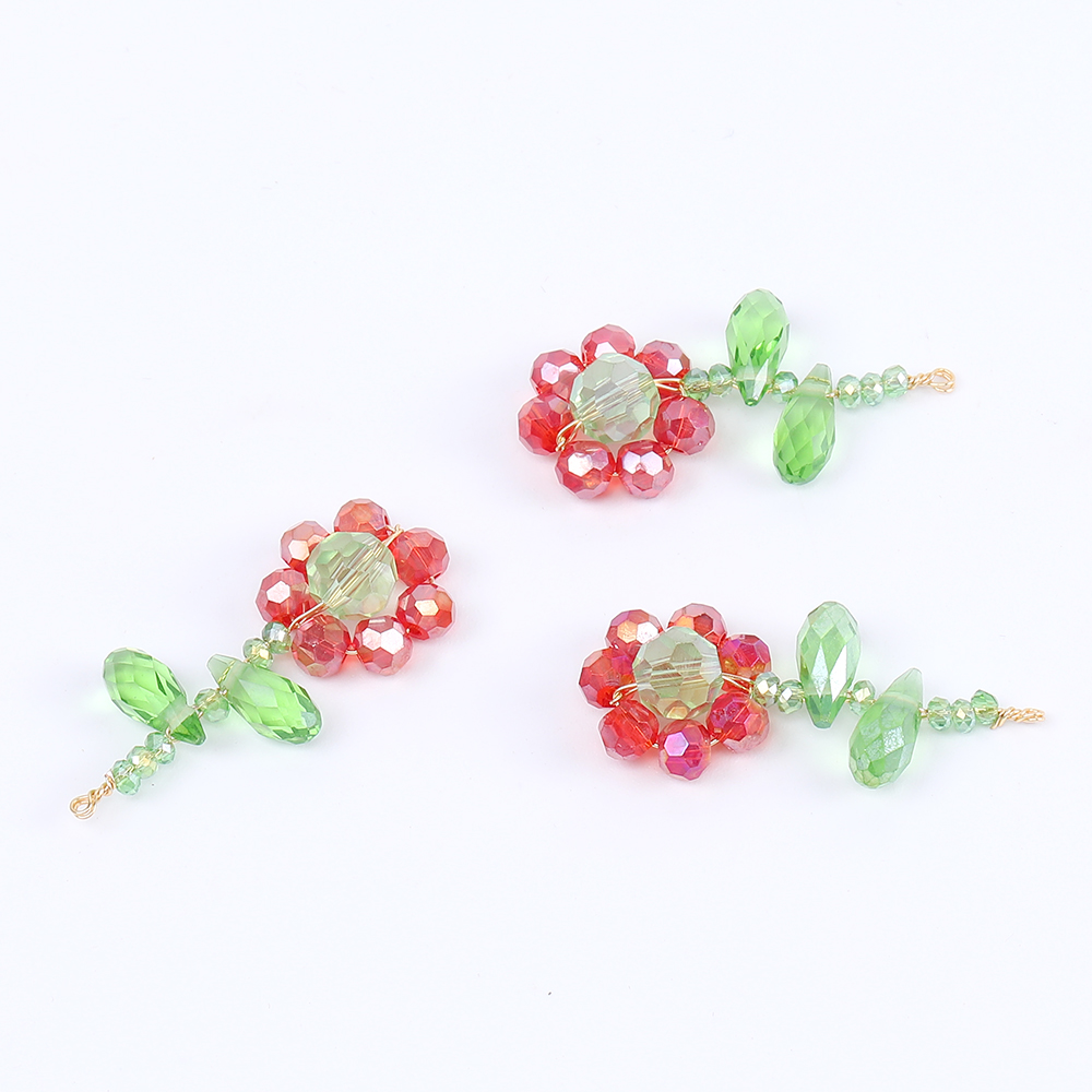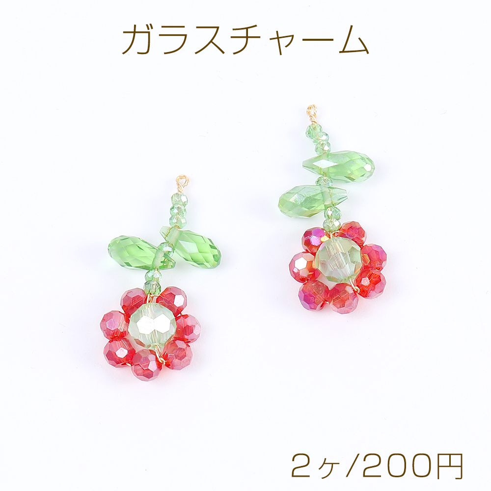 ワイヤーガラスチャーム フラワーチャーム カン付き 12×30mm ゴールド(2ヶ)