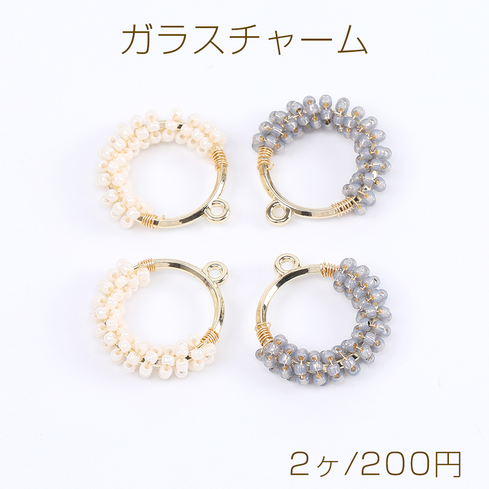 ワイヤーガラスチャーム フープチャーム カン付き 23×25mm ゴールド(2ヶ)