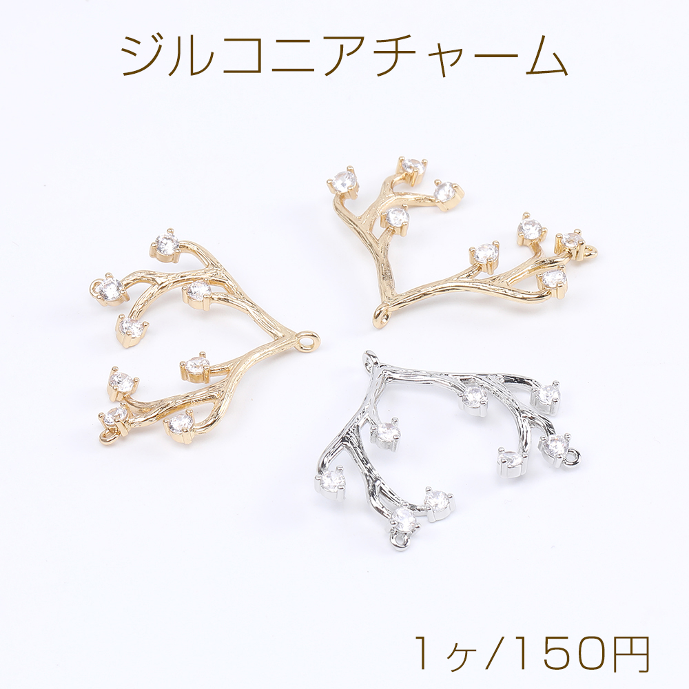 ジルコニアチャーム 枝コネクターチャーム 3カン付き 23×33mm(1ヶ)