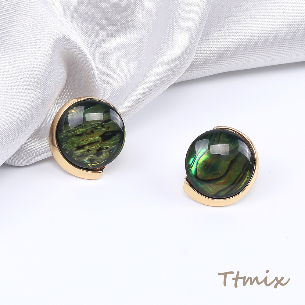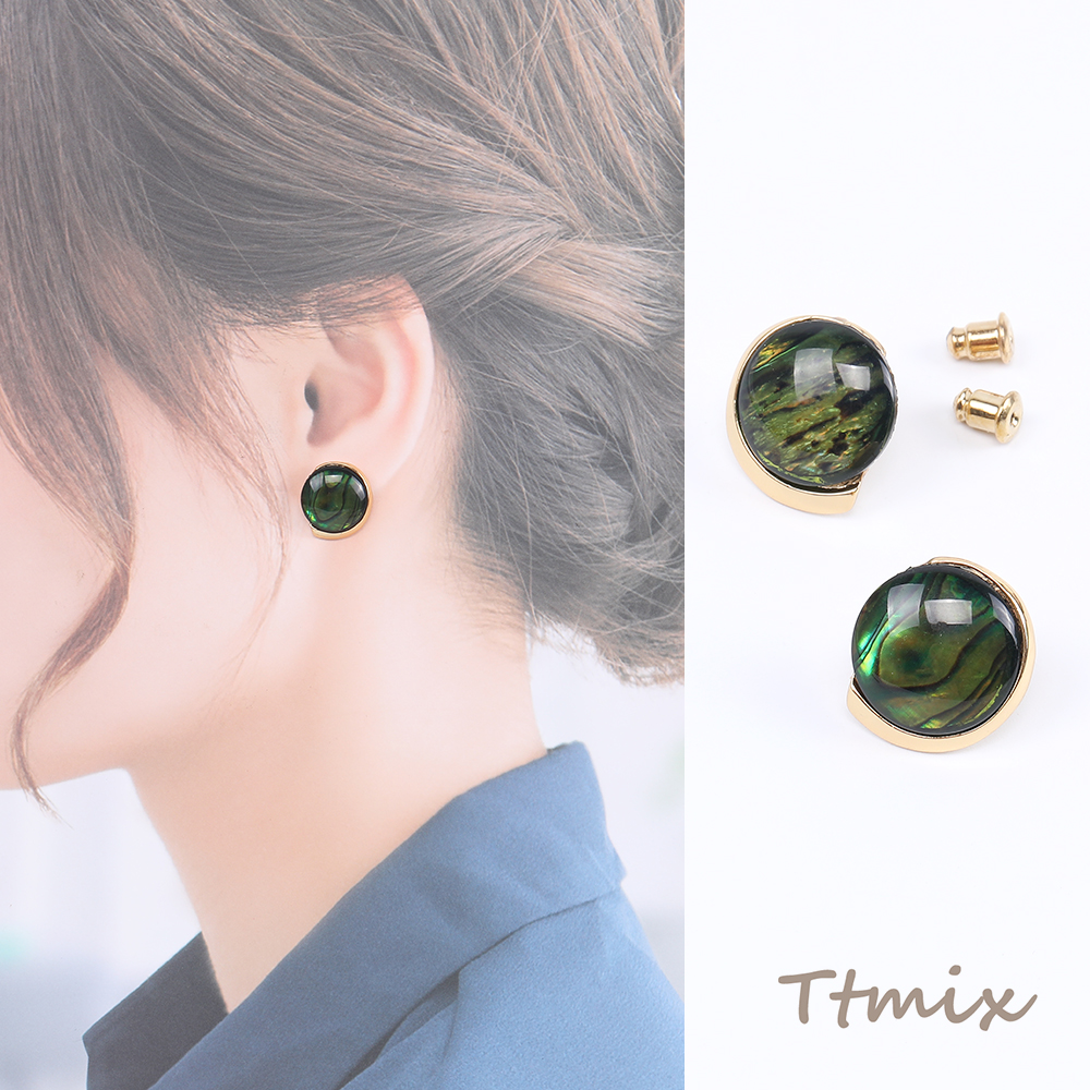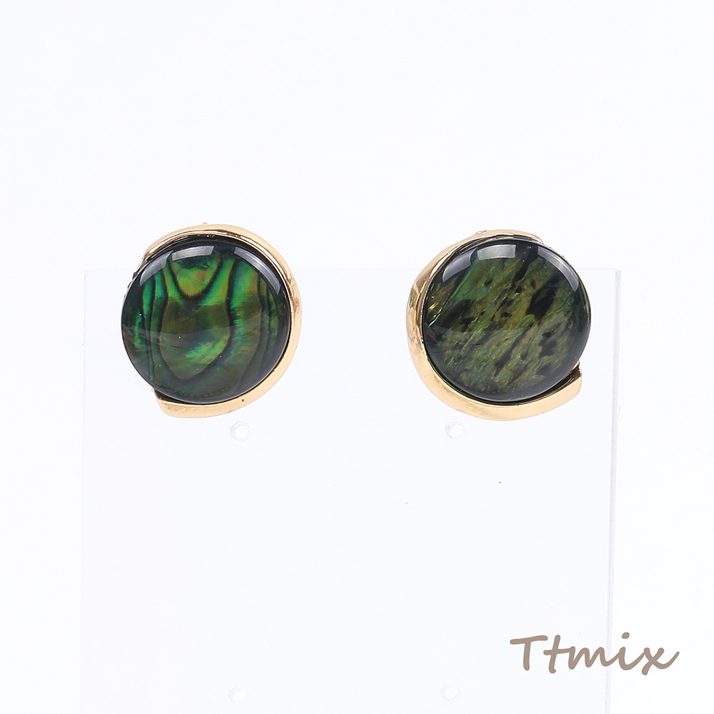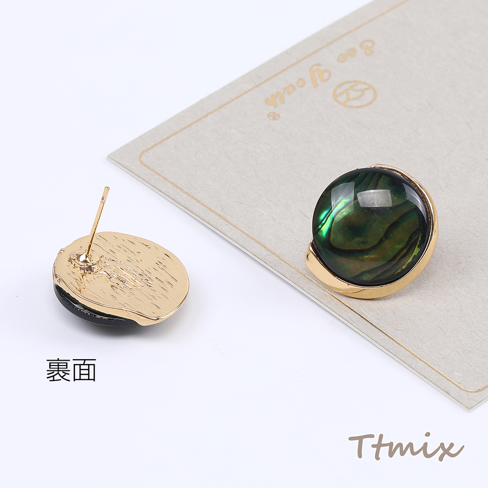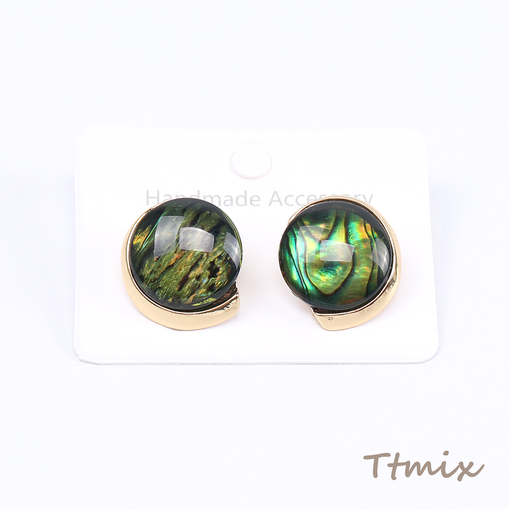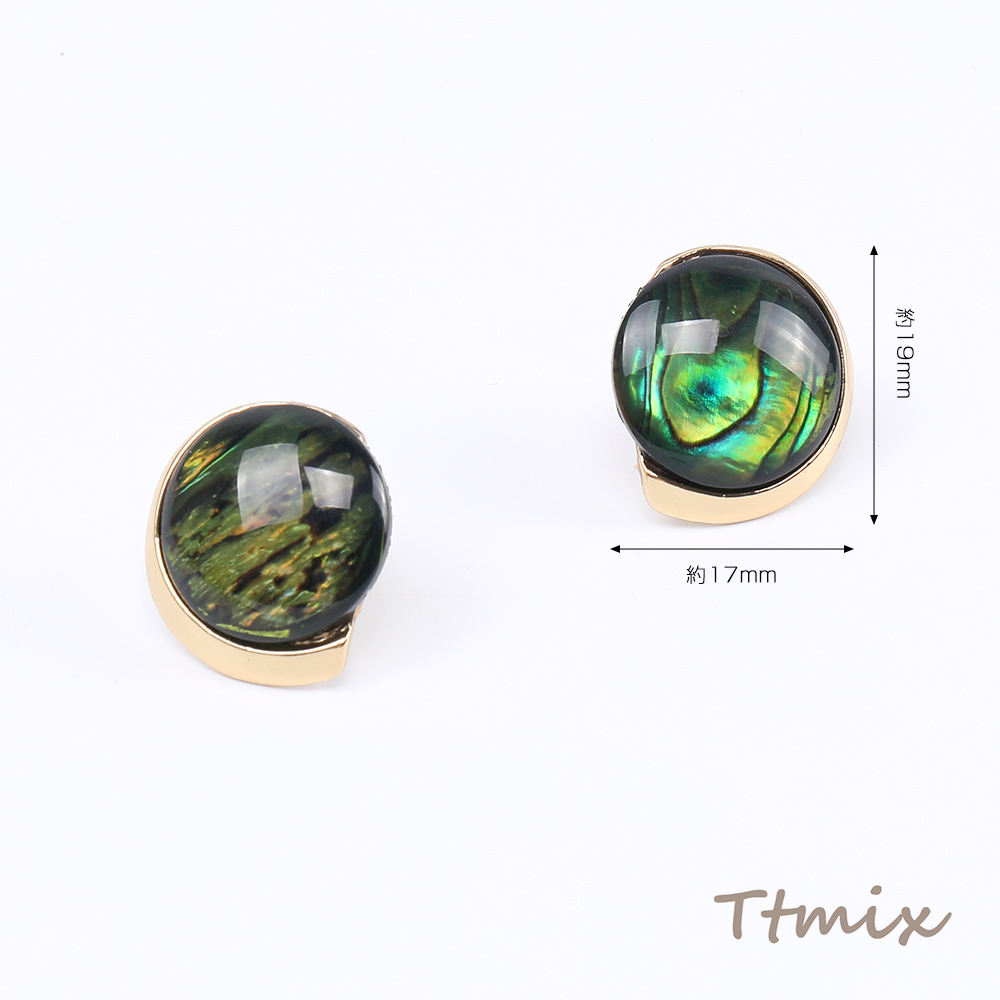 デザインピアス 樹脂付きピアス ラウンドピアス 17×19mm ダークグリーン(1ペア)