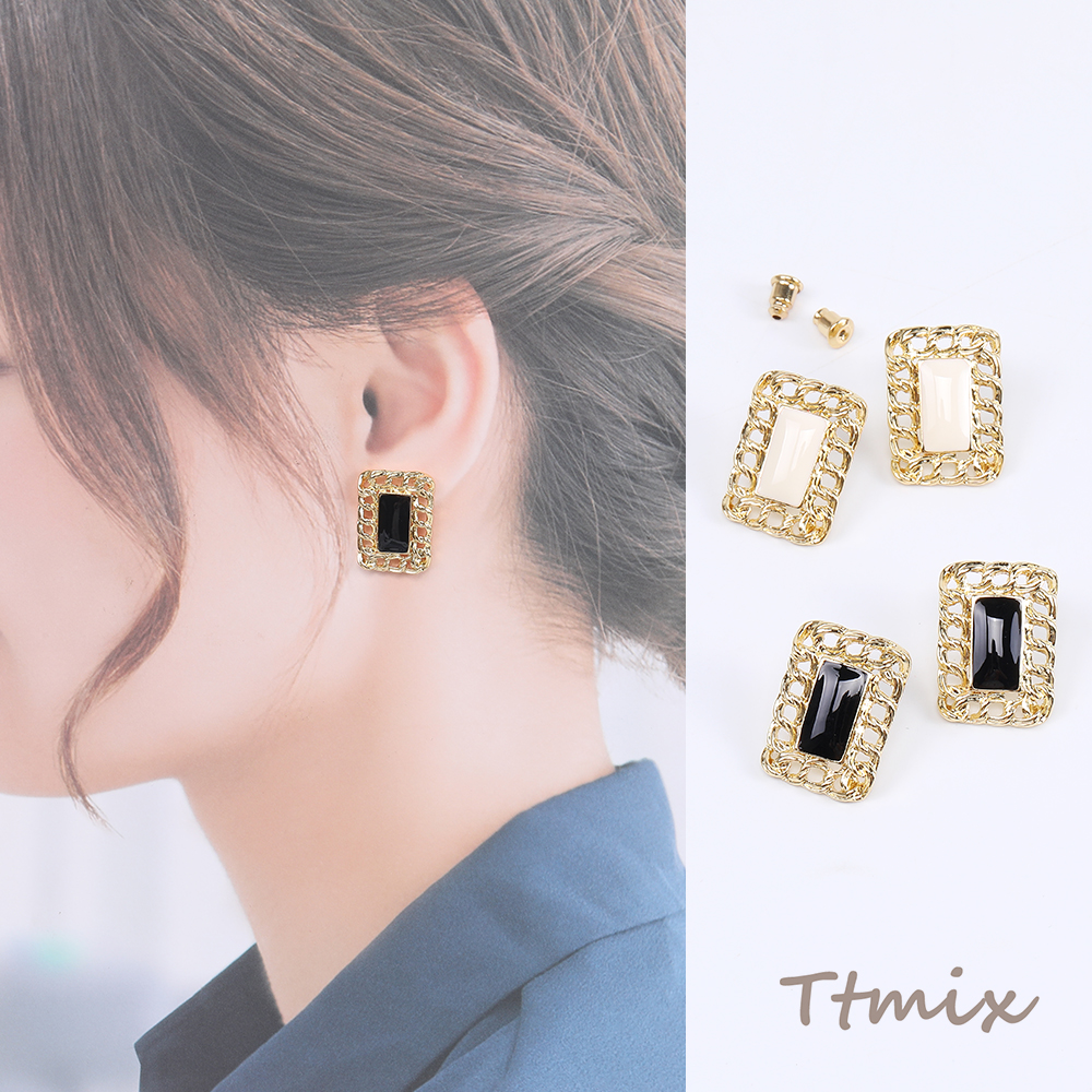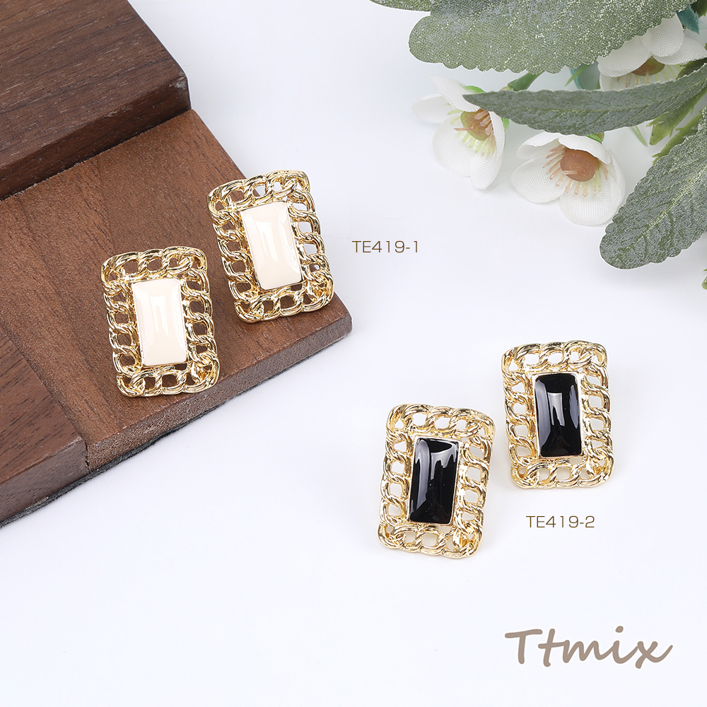 デザインピアス エポ付きピアス 長方形型ピアス 17×24mm(1ペア)