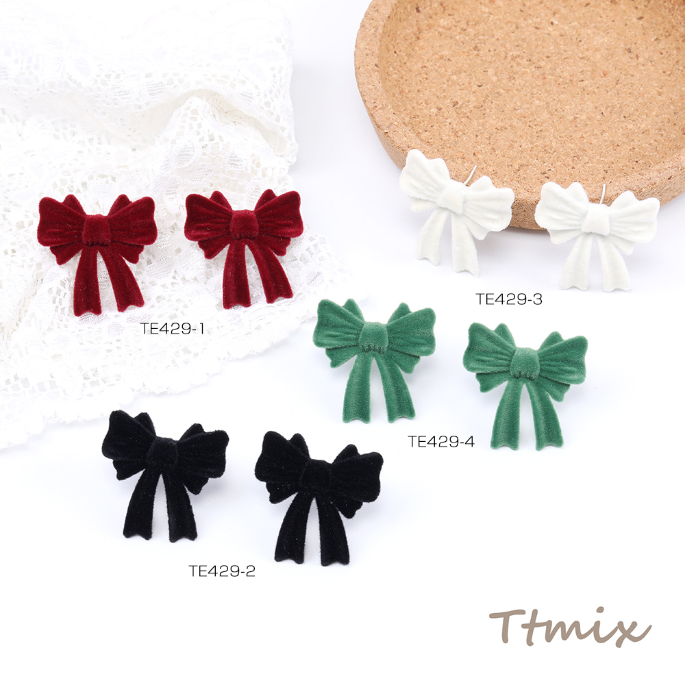 デザインピアス フロッキーピアス リボンピアス 30mm(1ペア)
