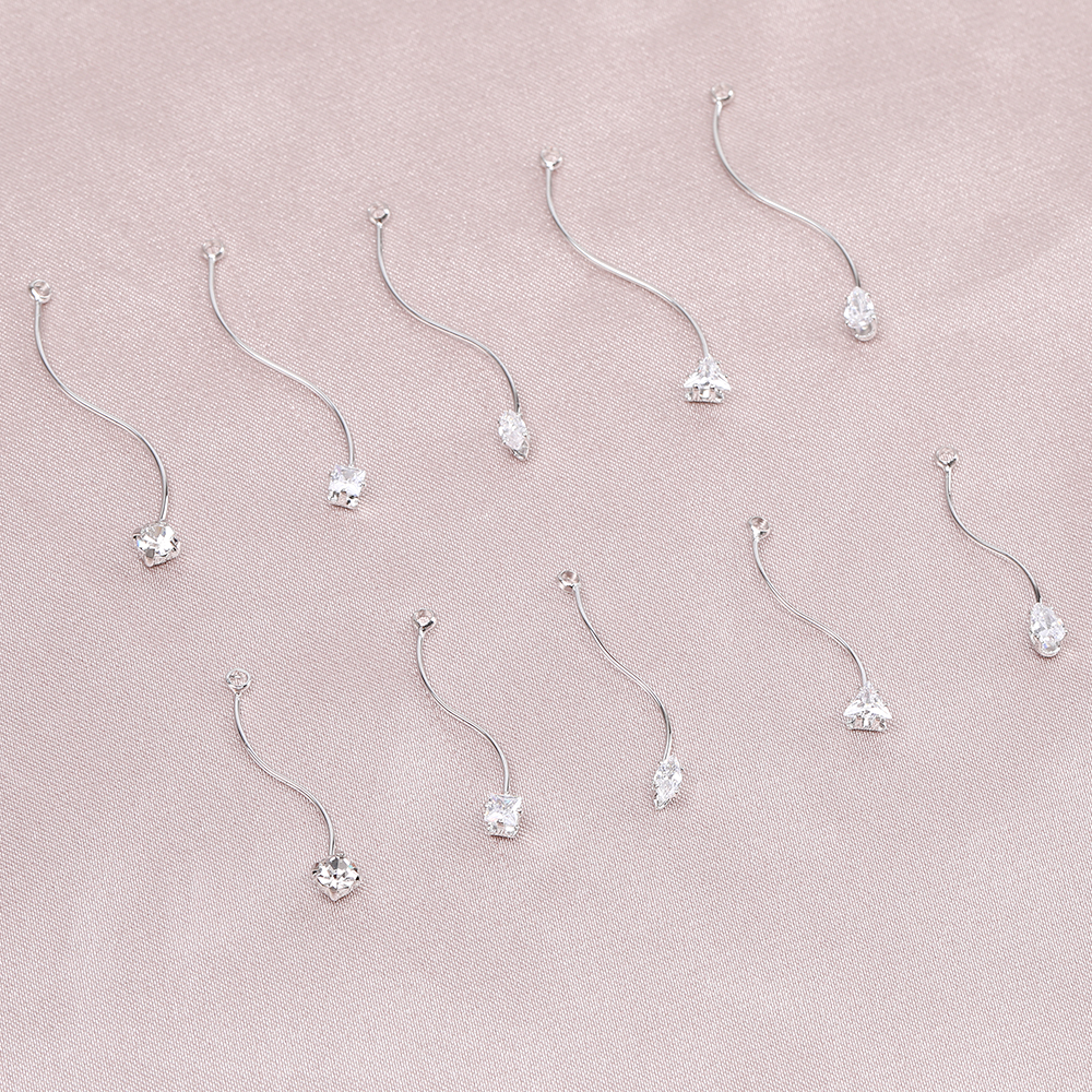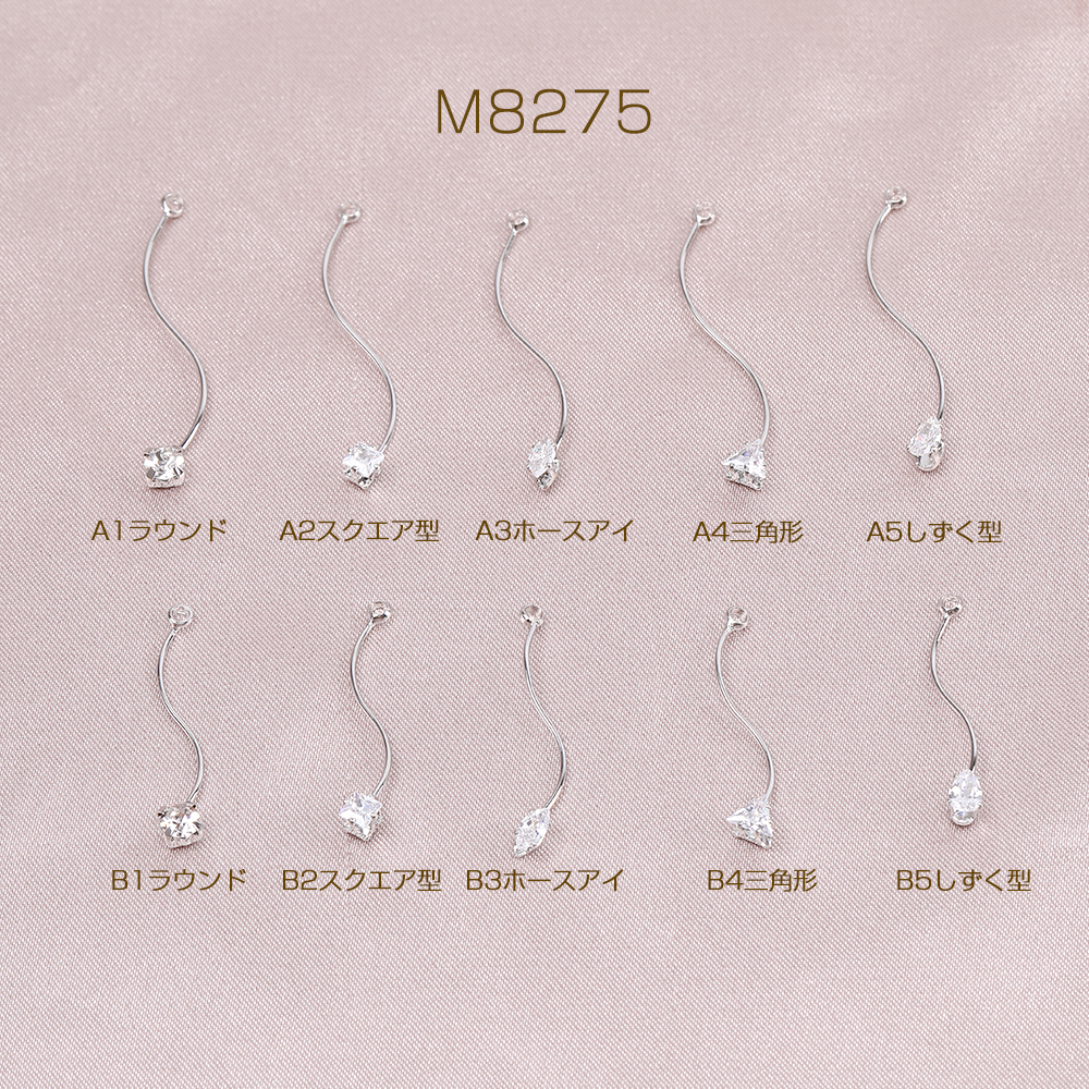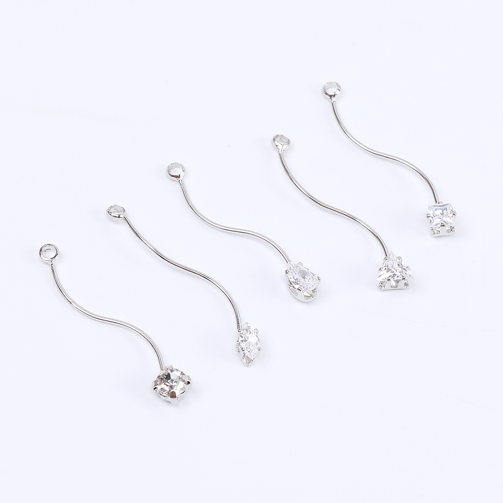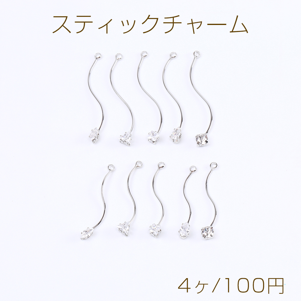 スティックチャーム ウェーブ ジルコニア付き 1カン付き ロジウム(4ヶ)