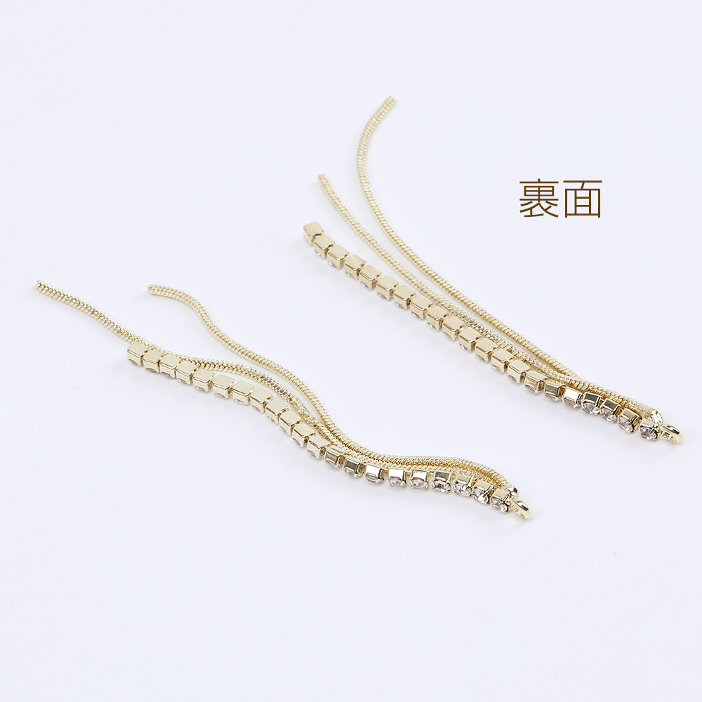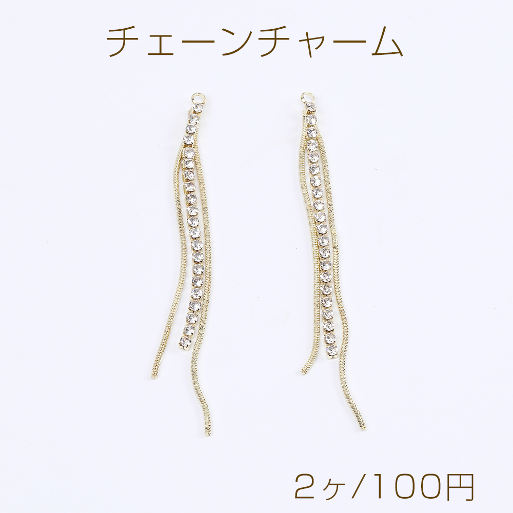 高品質チェーンチャーム チェーンタッセル ラインストーン付き カン付き 73mm ゴールド(2ヶ)