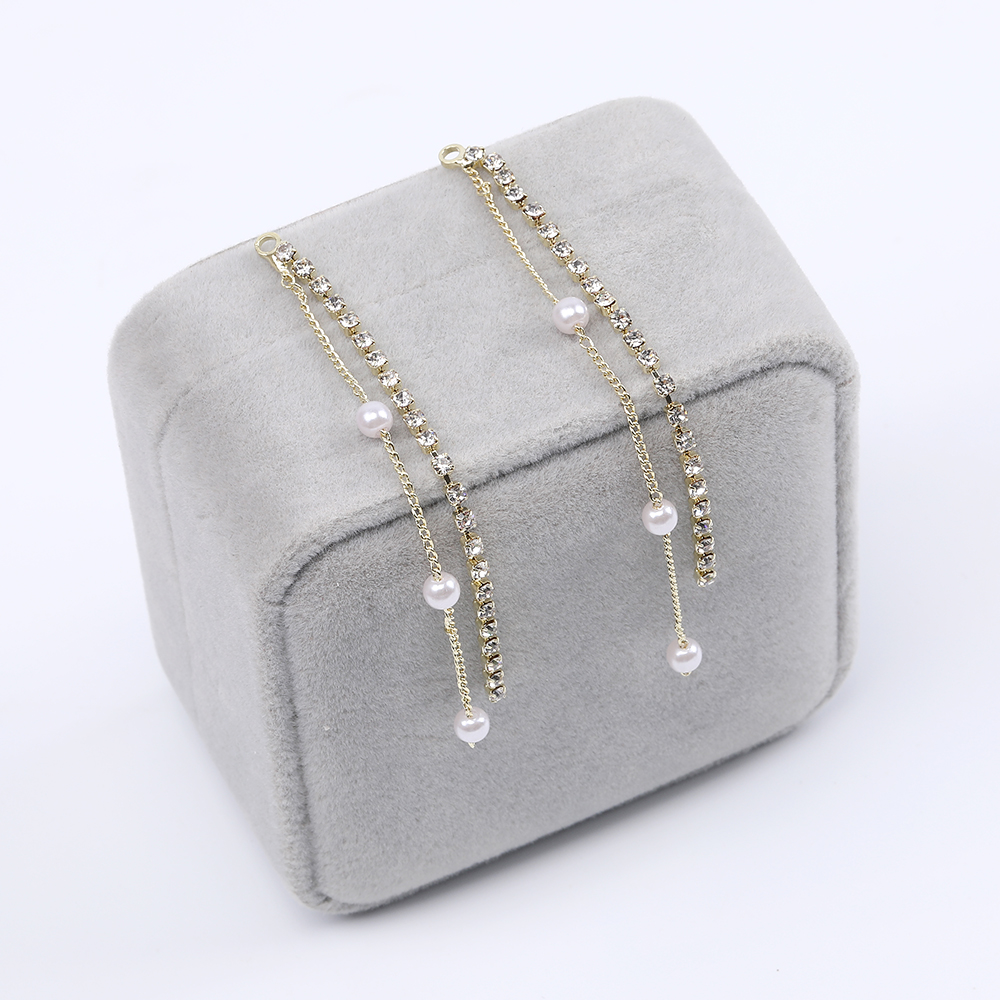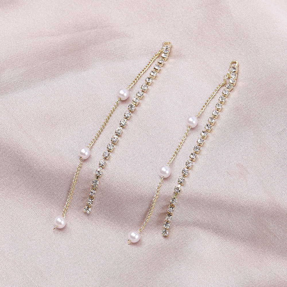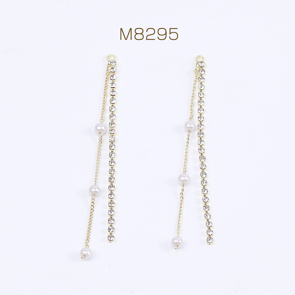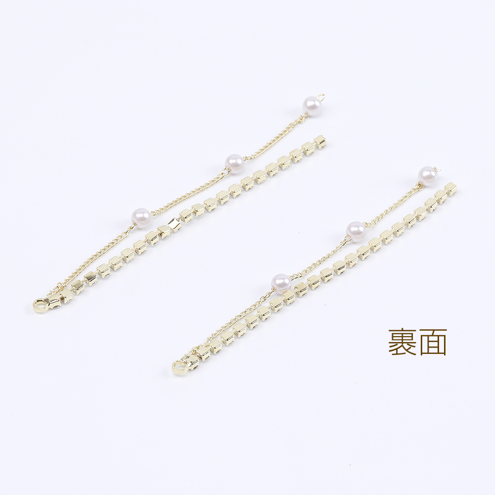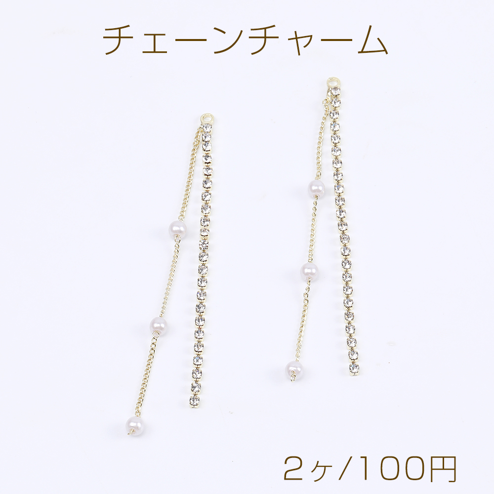 高品質チェーンチャーム パール&ラインストーン付き カン付き 72mm ゴールド(2ヶ)