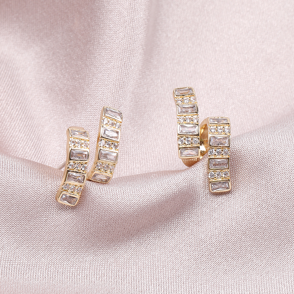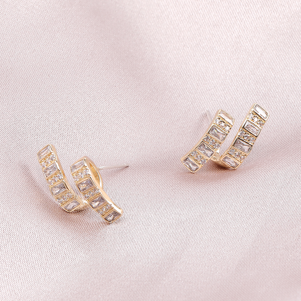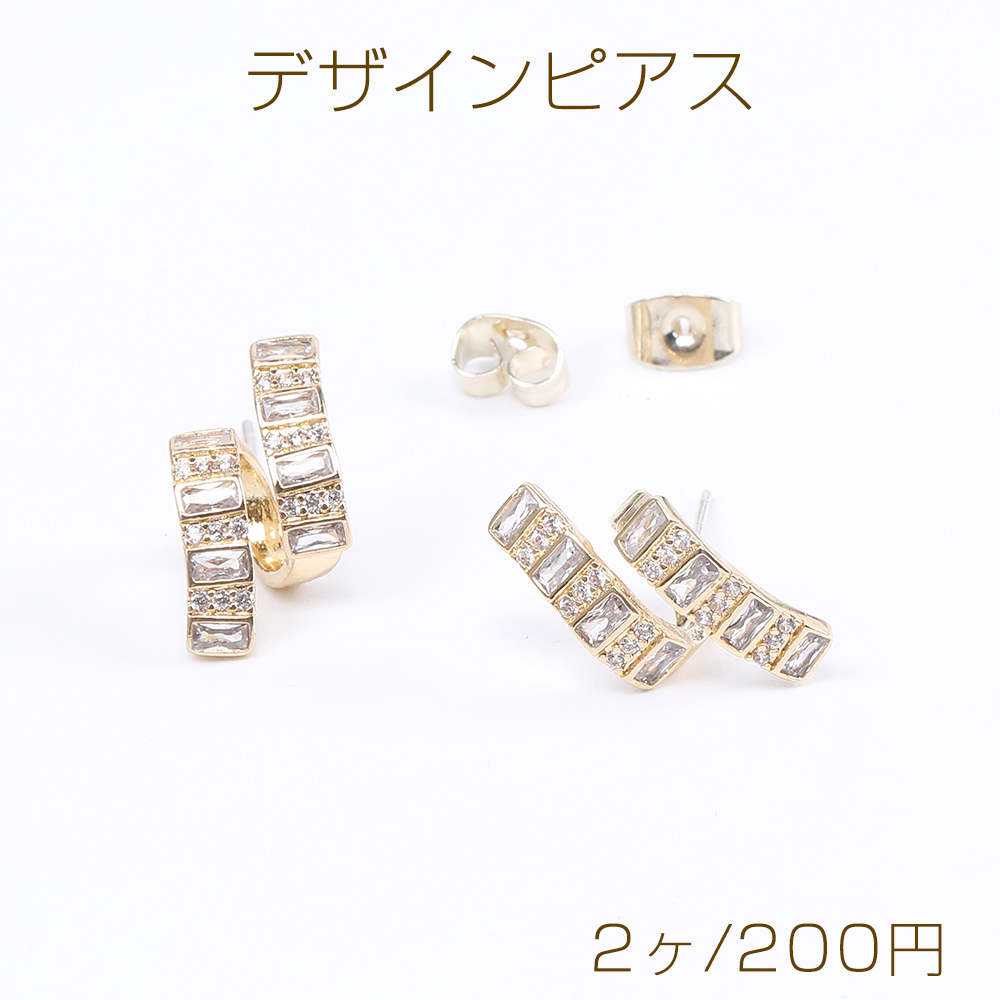 高品質デザインピアス ジルコニアピアス 9×15mm ゴールド クリスタル(2ヶ)