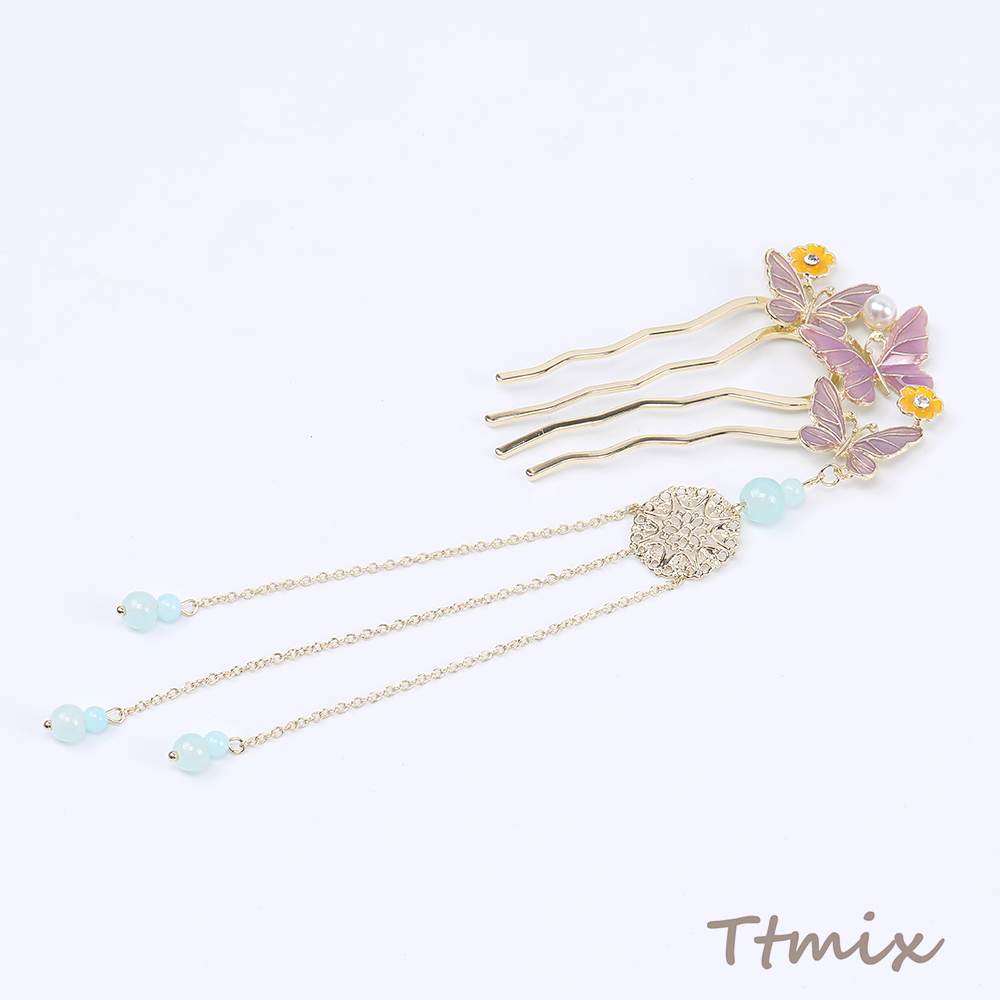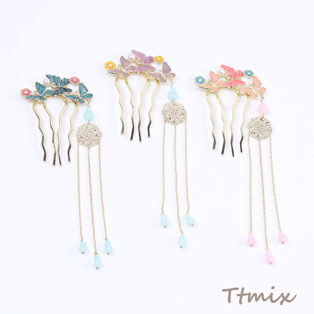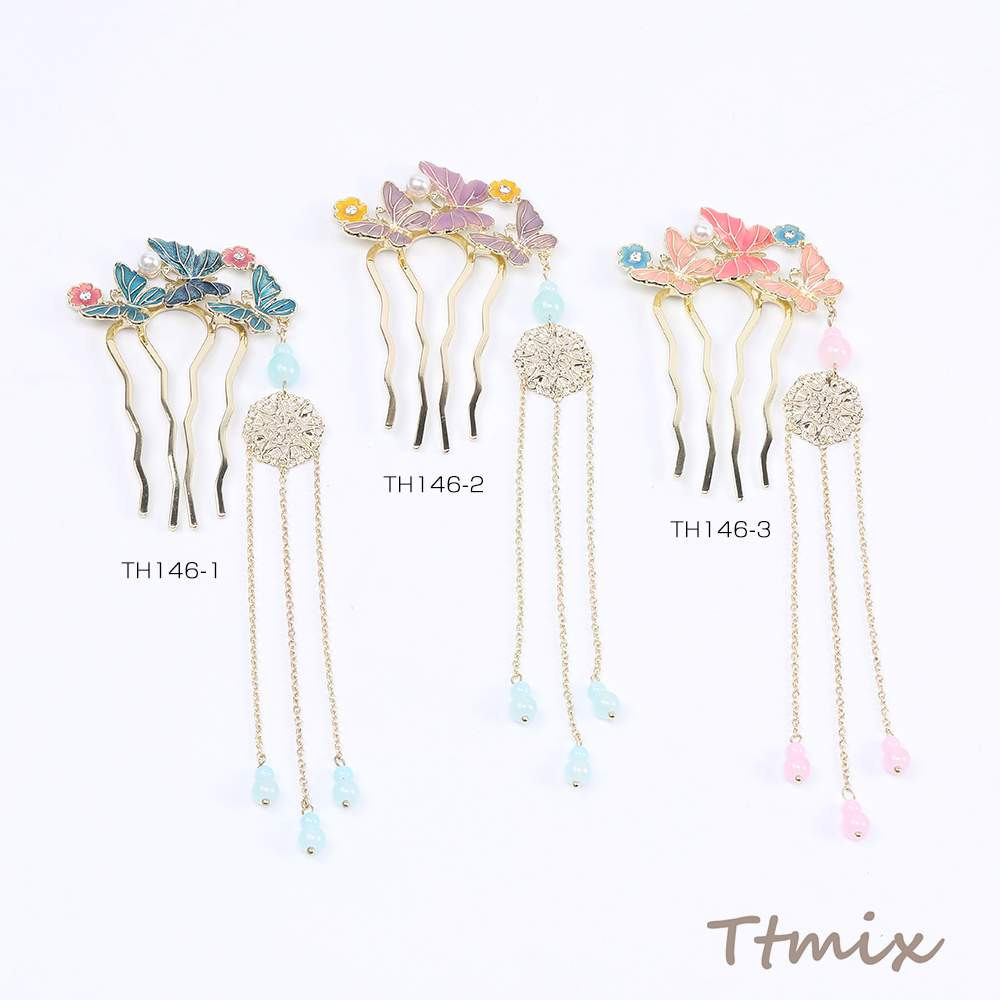 チェーンタッセル付きヘアコーム ヘアアクセサリー 蝶 ゴールド(1ヶ)