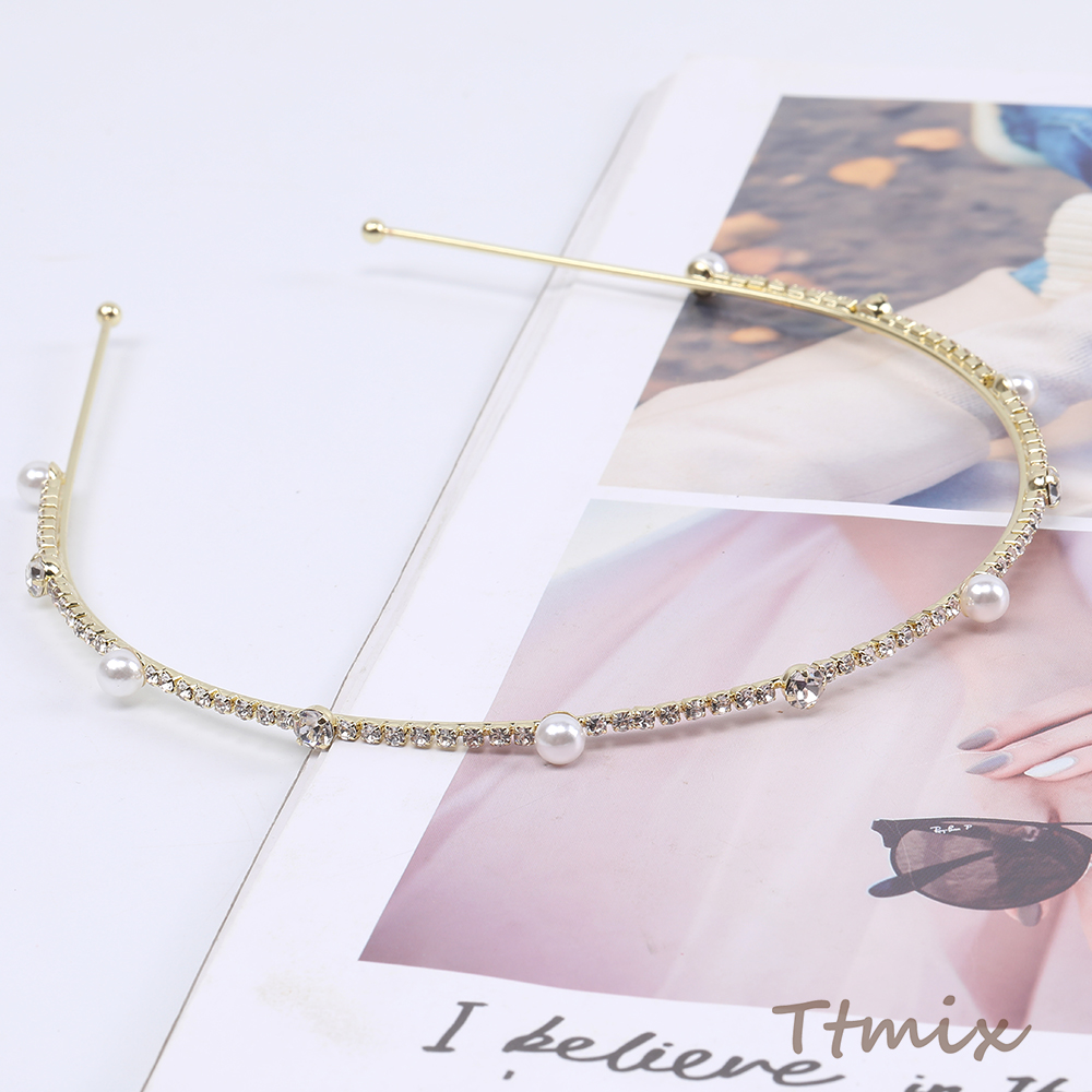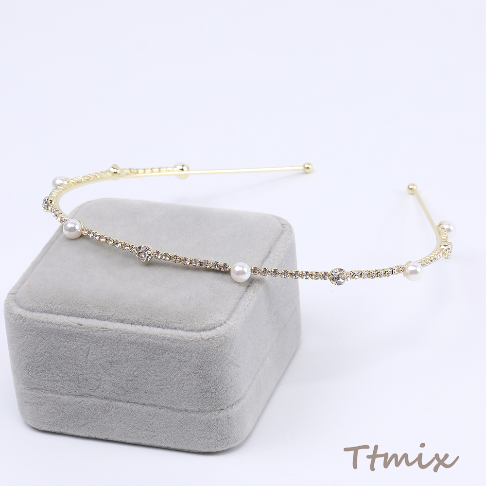 パール&ラインストーン付きカチューシャ ヘアアクセサリー ゴールド(1ヶ)